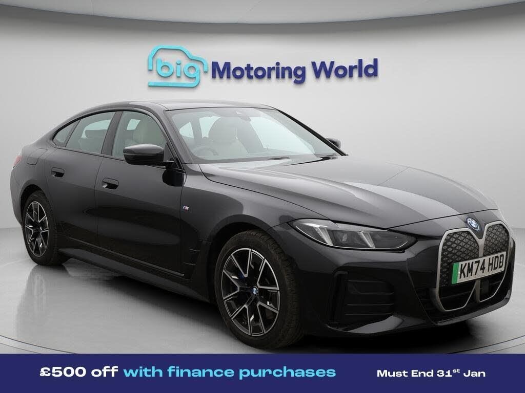 £500 towards your finance depo-Our BMW i4 comes with optional extras worth £4,075. Specification includes a range of fantastic features including £500 towards your finance deposit, Leather Seats, Apple CarPlay, Electric Seats, Premium Sound System, Connected Package Professional, M Sport Exterior Styling Pack, M Sport Bodykit, Android Auto, Satellite Navigation Specification information is supplied by CAPHPI and may vary to the actual car. This data does not form any part of a buying contact. Please check specification prior to purchase in-store. The MOT is valid until November 2027, visit bigmotoringworld.co.uk for more photos, a 360 tour, service history and a free HPI report.Were BIG on peace of mind and this Black BMW i4 has completed our comprehensive 200 point inspection and passed all checks. Its ready for you to drive away with immediate collection in-store. We include a 90-day warranty as standard plus an option to extend for up to 3 years.Reserve this car exclusively for you, safely and securely at bigmotoringworld.co.uk, with a fully refundable £99 deposit. Test drive before you buy, with no commitment, no hassle and a completely haggle free experience. Still searching and want to see thousands more cars? We are BIG on choice with over 8000 cars to choose from.Visit our award winning web site bigmotoringworld.co.uk.Were Big Motoring World and were BIG on what matters to you.