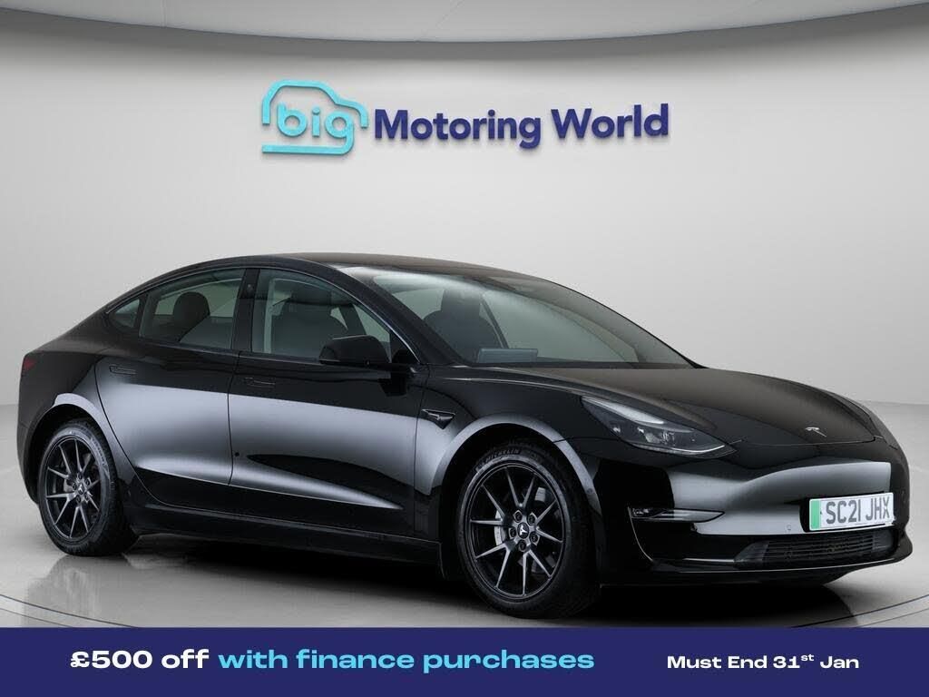 £500 towards your finance depo-Our Tesla Model 3 is finished in Black. Specification includes a range of fantastic features including £500 towards your finance deposit, All Wheel Drive, Leather Seats, Adaptive Cruise Control, Satellite Navigation, Heated Seats, Wireless Phone Charging, Heated Rear Seats, Heated Steering Wheel, Bluetooth Specification information is supplied by CAPHPI and may vary to the actual car. This data does not form any part of a buying contact. Please check specification prior to purchase in-store visit bigmotoringworld.co.uk for more photos, a 360 tour, service history and a free HPI report.Were BIG on peace of mind and this Black Tesla Model 3 has completed our comprehensive 200 point inspection and passed all checks. Its ready for you to drive away with immediate collection in-store. We include a 90-day warranty as standard plus an option to extend for up to 3 years.Reserve this car exclusively for you, safely and securely at bigmotoringworld.co.uk, with a fully refundable £99 deposit. Test drive before you buy, with no commitment, no hassle and a completely haggle free experience. Still searching and want to see thousands more cars? We are BIG on choice with over 8000 cars to choose from.Visit our award winning web site bigmotoringworld.co.uk.Were Big Motoring World and were BIG on what matters to you.
