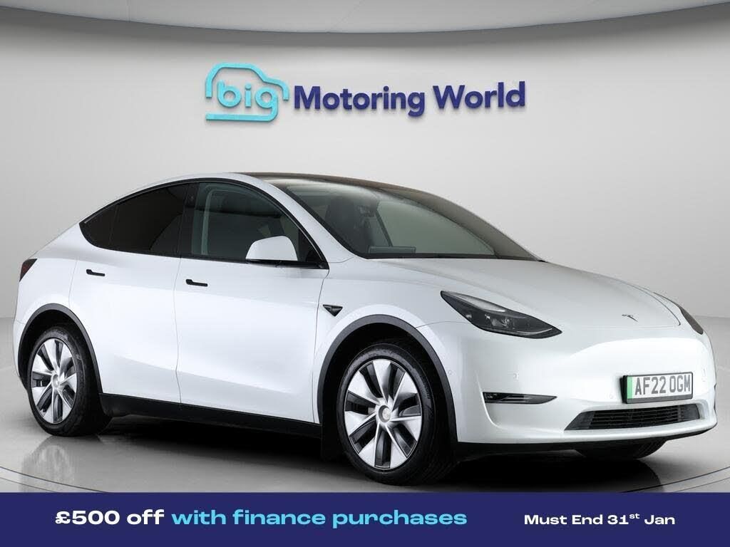 £500 towards your finance depo-Our Tesla Model Y is finished in White. Specification includes a range of fantastic features including £500 towards your finance deposit, 20'' Alloy Wheels, Leather Seats, Satellite Navigation, Privacy Glass, Heated Seats, Wireless Phone Charging, Rear View Camera, Heated Rear Seats, Heated Steering Wheel Specification information is supplied by CAPHPI and may vary to the actual car. This data does not form any part of a buying contact. Please check specification prior to purchase in-store. The MOT is valid until February 2027, visit bigmotoringworld.co.uk for more photos, a 360 tour, service history and a free HPI report.Were BIG on peace of mind and this White Tesla Model Y has completed our comprehensive 200 point inspection and passed all checks. Its ready for you to drive away with immediate collection in-store. We include a 90-day warranty as standard plus an option to extend for up to 3 years.Reserve this car exclusively for you, safely and securely at bigmotoringworld.co.uk, with a fully refundable £99 deposit. Test drive before you buy, with no commitment, no hassle and a completely haggle free experience. Still searching and want to see thousands more cars? We are BIG on choice with over 8000 cars to choose from.Visit our award winning web site bigmotoringworld.co.uk.Were Big Motoring World and were BIG on what matters to you.