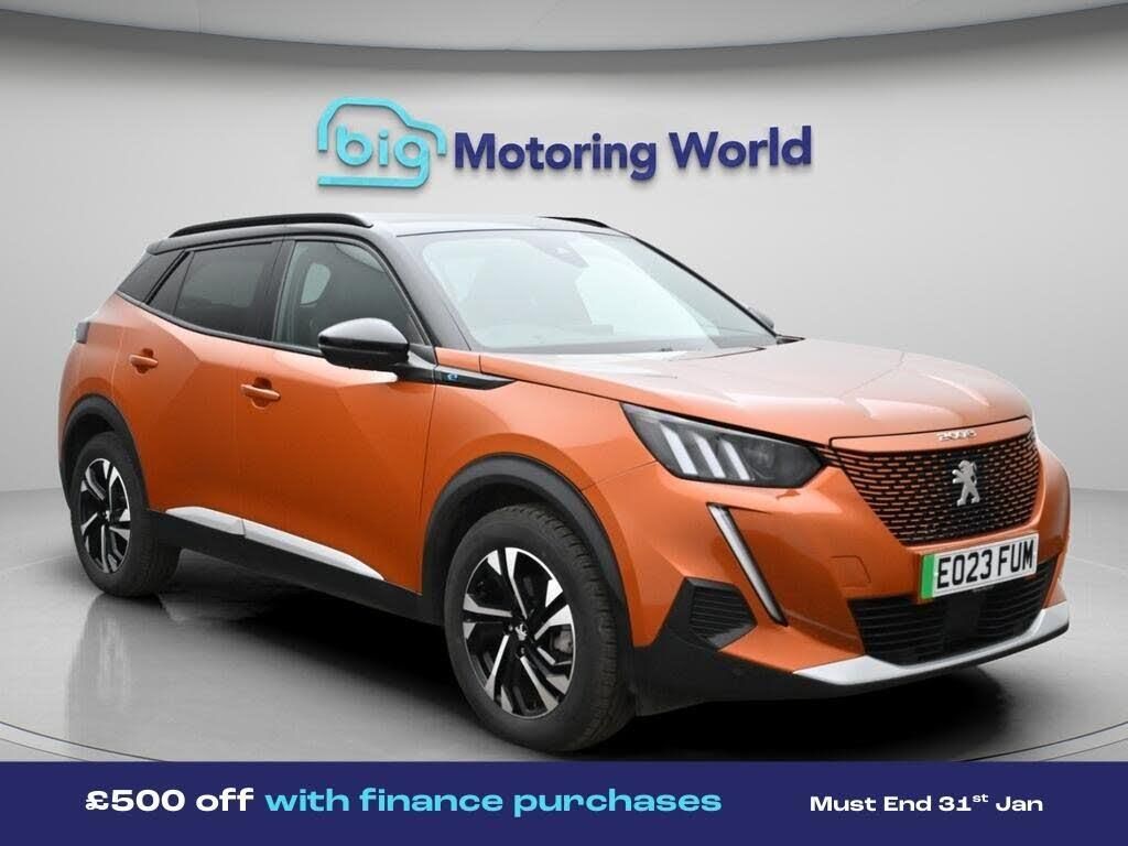 £500 towards your finance depo-Our Peugeot E-2008 is finished in Orange. Specification includes a range of fantastic features including £500 towards your finance deposit, Part Leather Seats, Lane Assist, Visibility Pack, Satellite Navigation, Privacy Glass, Heated Seats, Rear View Camera, Surround View Cameras, Internet Specification information is supplied by CAPHPI and may vary to the actual car. This data does not form any part of a buying contact. Please check specification prior to purchase in-store. The MOT is valid until March 2027, visit bigmotoringworld.co.uk for more photos, a 360 tour, service history and a free HPI report.Were BIG on peace of mind and this Orange Peugeot E-2008 has completed our comprehensive 200 point inspection and passed all checks. Its ready for you to drive away with immediate collection in-store. We include a 90-day warranty as standard plus an option to extend for up to 3 years.Reserve this car exclusively for you, safely and securely at bigmotoringworld.co.uk, with a fully refundable £99 deposit. Test drive before you buy, with no commitment, no hassle and a completely haggle free experience. Still searching and want to see thousands more cars? We are BIG on choice with over 8000 cars to choose from.Visit our award winning web site bigmotoringworld.co.uk.Were Big Motoring World and were BIG on what matters to you.