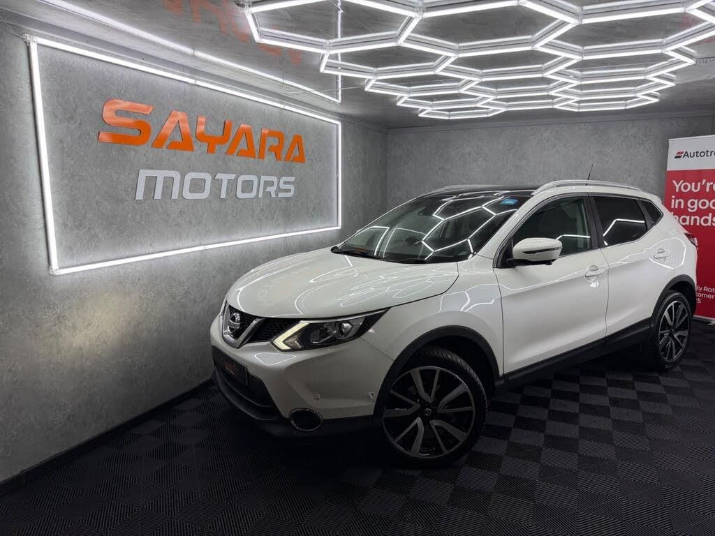 Here at Sayara Motors proud to introduce the stunning Nissan Qashqai.This 2016 Nissan Qashqai 1.5 dCi Tekna, finished in stunning 3-stage pearl white, is a high-spec SUV that perfectly combines comfort, practicality and advanced technology. Powered by the economical 1.5 dCi engine, it offers a smooth and efficient drive ideal for both everyday use and longer journeys. The interior is well appointed with heated leather seats and a panoramic glass roof, creating a bright and comfortable cabin for all passengers. Technology features include satellite navigation, Bluetooth connectivity and cruise control, while safety and convenience are enhanced with 360° surround view cameras, front and rear parking sensors and blind spot assist, making every journey and manoeuvre effortless. Spacious, refined and packed with features, this Qashqai is an excellent choice for families and daily driving alike.Service And Maintenance:- Main dealer and independent Service history present- Recent oil and filter replacement - Fresh MOT Key Information:- HPI Clear- 6 Months Warranty- 6 Months Breakdown Recovery- Part exchange availableAll of our vehicles are put through a Pre-Delivery Inspection which includes a fresh service and clean M.O.T for the new owners peace of mind.-PANO ROOF|360 CAM|HEATED SEATS