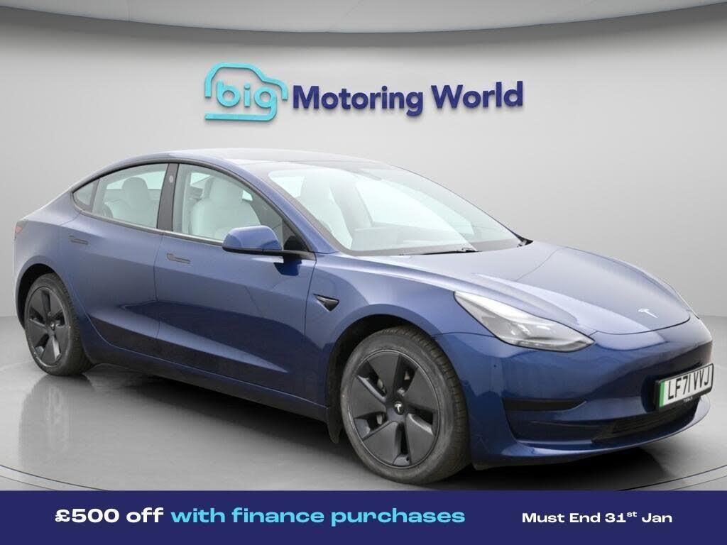 £500 towards your finance depo-Our Tesla Model 3 is finished in Blue. Specification includes a range of fantastic features including £500 towards your finance deposit, Panoramic Roof, Leather Seats, Adaptive Cruise Control, Satellite Navigation, Heated Seats, Wireless Phone Charging, Rear View Camera, Bluetooth, Blind Spot Assist Specification information is supplied by CAPHPI and may vary to the actual car. This data does not form any part of a buying contact. Please check specification prior to purchase in-store. The MOT is valid until March 2027, visit bigmotoringworld.co.uk for more photos, a 360 tour, service history and a free HPI report.Were BIG on peace of mind and this Blue Tesla Model 3 has completed our comprehensive 200 point inspection and passed all checks. Its ready for you to drive away with immediate collection in-store. We include a 90-day warranty as standard plus an option to extend for up to 3 years.Reserve this car exclusively for you, safely and securely at bigmotoringworld.co.uk, with a fully refundable £99 deposit. Test drive before you buy, with no commitment, no hassle and a completely haggle free experience. Still searching and want to see thousands more cars? We are BIG on choice with over 8000 cars to choose from.Visit our award winning web site bigmotoringworld.co.uk.Were Big Motoring World and were BIG on what matters to you.
