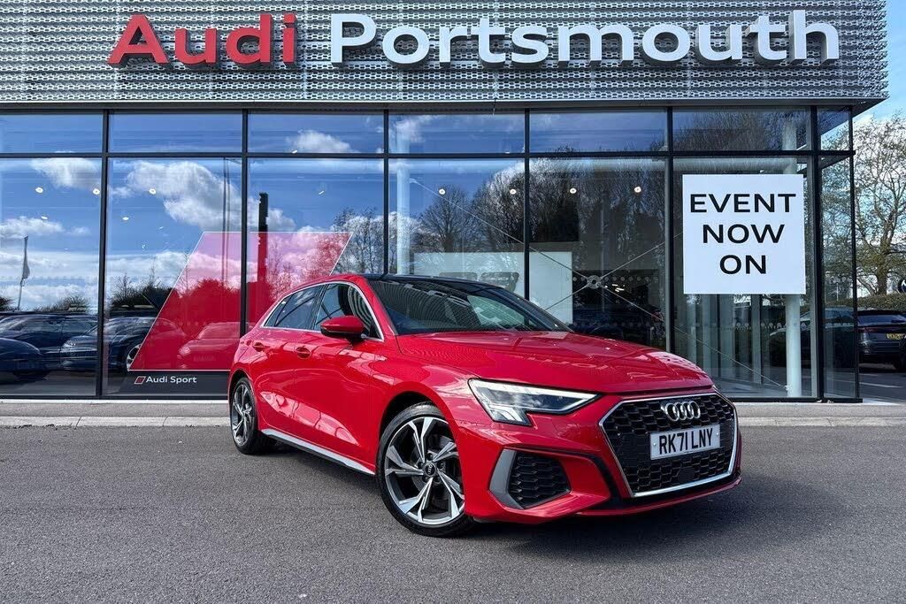 FULL AUDI SERVICE HISTORY, COMFORT & SOUND PACK ( BANG & OLUFSEN SOUND SYSTEM WITH 3D SOUND, HEATED FRONT SEATS, PARK ASSIST WITH PARKING AID PLUS, SATELLITE NAVIGATION, REAR PARKING CAMERA ) MULTI FUNCTION STEERING WHEEL, HILL HOLD ASSIST, CRUISE CONTROL, AUDI VIRTUAL COCKPIT, LANE DEPARTURE WARNING, APPLE CARPLAY, ANDROID AUTO, DAB RADIO, TINTED WINDOWS - PRIVACY GLASS, FRONT AND REAR PARKING SENSORS, SPLIT FOLDING REAR SEATS, LIGHT & RAIN SENSOR, AUTO DIMMING REAR VIEW MIRROR, SELECTABLE DRIVING MODES, PUSH BUTTON START, TANGO RED METALLIC WITH LEATHER UPHOLSTERY, 18'' 5 Y SPOKE STYLE DIAMOND CUT ALLOY WHEELS, DUAL ZONE CLIMATE CONTROL, HEATED FRONT SEATS WITH 4 WAY LUMBAR SUPPORT, LED HEADLIGHTS WITH DYNAMIC REAR INDICATORS, VOICE ACTIVATED CONTROLS AND MUCH MORE.All Audi Approved used cars are offered with a 12-month warranty and roadside assistance.Portsmouth Audi are delighted to offer this Audi A3 in Tango red over Leather and has completed just 28255 miles., We are proud to be part of the Harwoods group, a family run business established in 1931. With four Approved Audi retailers within our group, we have access to over 400 vehicles. If this isn't the right car for you, please contact us and we will find it. Our group stock has spec to include Sunroof, Leather, Heated Seats, Apple Car Play, Heated Steering Wheel, Reverse Camera, Rear Entertainment, Towbar, 360-degree camera, Comfort & Sound Pack, Tech Pack, Panoramic Sun Roof, Tow Bar, Black Pack, Air Suspension, Apple Carplay, Adaptive Cruise, Massage Seats, Refrigerator, AWD, Technology Pack, Head up Display, Vorsprung, Technik, Black Edition, S-Line, S Line, Edition 1, TFSI, Quattro, Sportback, LWB. Other colour options including Black, Blue, Green, Silver, White, Red, Grey, Yellow, Orange. Interior options of Ebony, Black, Ivory, White, Tan, Cream, Oyster, & Euro 6 ULEZ compliant drive trains.-PANORAMIC GLASS SUNROOF-Video Presentation available on Request
