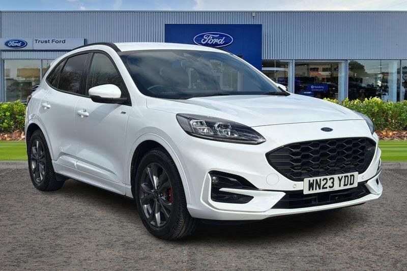 12.3 digital colour instrument cluster, Ford easy fuel, Ford SYNC 3 with 8 TFT LCD touchscreen, App Link, andriod auto/apple carPlay, emergency assistance and navigation with Ford pass connect, Front and rear parking sensors, Hands free power tailgate, Lane keeping aid with lane departure warning, Power assist steering, Rear view camera, Selectable drive modes, Service interval indicator, Auto headlamps with high and low beam, Black roof rails, Body colour bumpers, Day/night rear view mirror, Front LED fog lamps, Large rear roof spoiler, LED daytime running lights, LED rear lights, Power folding, electrically adjustable and heated door mirrors with puddle lights, Power front/rear windows with global close, Quickclear heated windscreen, Rain sensing wipers, Rear privacy glass, Rear side wing doors, Rear wiper, ST Line body styling kit with unique front and rear fascia and bumper, rear painted diffuser, front painted skid plates, dark mesh upper grille, ST Line front scuff plates, Third brake light, Twin exhausts, 2nd row sliding seats with 60:40 split, Alloy pedals, Centre console with electronic parking brake, Dark headlining and pillars, Electronic automatic temperature control (EATC), Flat bottomed leather steering wheel in sensico with red stitching, Front and rear head restraints, Partial premium touch Sensico with black cloth inserts and red stitching, Rear centre head restraint, Single front passenger seat, Sports seats, ST Line front and rear floor mats, 3x3 point rear seatbelts, Airbags - front driver/passenger, front and rear curtain, Drivers knee airbag, Electronic stability control (ESC) and ABS, Ford MyKey Gen 2 safety system, Manual child proof rear door locks, Post collision braking, Pre collision assist with autonomous emergency braking, Rear seat Occupancy alert, Red brake calipers, Tyre pressure monitoring system