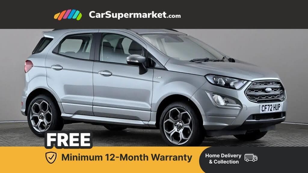 Cruise Control, Sat Nav, Android Auto, Apple CarPlay, Parking Sensors, Traffic Sign Recognition;This Ford EcoSport ST-Line is finished in Solar Silver and offers sporty styling with practical features. It includes cruise control, satellite navigation, Apple CarPlay, Android Auto, parking sensors and traffic sign recognition. Optional extras include metallic paint and upgraded interior trim, with a total options cost of £525. Supplied with a minimum 12-month warranty. Last serviced on 21/11/2025.