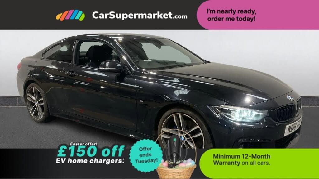 Bluetooth, Digital Radio, Heated Front Seats;This black BMW 4 Series 420d M Sport offers powerful and efficient performance from the 2.0 litre diesel engine paired with the smooth automatic gearbox. The vehicle features Bluetooth connectivity, digital radio and heated front seats as part of its core specification. This example benefits from a range of desirable optional extras including Black Sapphire metallic paint, Dakota leather interior in black, the Harman Kardon loudspeaker system and the M Sport Plus Package. Additional options include the M Sport braking system, sun protection glazing, 19 inch M Double Spoke alloy wheels in bi-colour Orbit Grey and aluminium carbon interior trim with pearl chrome highlights. These factory fitted options total £4,430.00.
