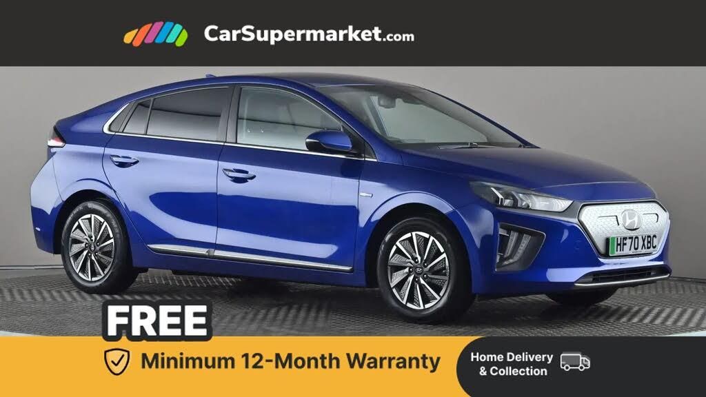 10.25" touchscreen satellite navigation includes traffic messaging channel, mapcare, live services and bluelink,Adaptive cruise control with Stop and Go,Apple car play/Android Auto,Bluetooth system,Driver attention alert system,E-call,Eco driving assistant system (ECO DAS),Electric power steering with variable drive modes,Gear lever drive mode selector,Lane departure warning system with lane keep assist - LKAS,Parking system with rear camera and guidance system,Rear parking sensor,Rear view monitor,Roadside assistance,Supervision cluster with 7" high resolution TFT LCD,Voice recognition,Windscreen washer fluid sensor and warning indicator,Wireless phone charging pad,7 pin charging cable,7.2 kw On board Charger,Emergency 3 pin connector charging cable (ICCB),DAB Digital radio,Infinity sound system includes 1 centre, 2 tweeters, 2 front, 2 rear and 1 ext amp,Radio data system,Steering wheel audio, phone and cruise controls,USB and aux connection in front,Active air flap radiator grille,Auto dimming rear view mirror,Automatic headlights with dusk sensor,Body colour bumpers,Body colour door handles with chrome inserts,Body colour door mirrors,Bodyside mouldings,Chrome door scuff with ioniq logo,Chrome finish window surround,Door mirror puddle lights,Electric adjustable door mirrors,Electric front windows - anti trap + one touch,Electric heated door mirrors,Grey radiator grille,Heated rear windscreen,High beam assist,LED daytime running lights,LED Headlights,LED indicators in door mirrors,LED rear fog light,Positioning Lights - LED,Power folding door mirrors,Rear electric windows,Rear LED lights,Rear roof spoiler with integrated LED brake light,Solar glass with windscreen shade band,Tinted windows,Two tone rear bumper,12V power outlets,60/40 split folding rear seat,Centre console storage,Centre interior light,Chrome interior door handles,Cloth upholstery,Driver seat height adjust,Driver's electric adjustable lumbar support,Driver/passenger sunvisors with illuminated vanity mirrors,Dual zone climate control,Front centre armrest with storage compartment,Front cupholder,Front head restraints with vertical and horizontal adjustment,Front seat and rear pockets,Heated front seats,Heated steering wheel,Illuminated luggage compartment,Interior mood lighting,Leather wrapped steering wheel,Luggage net,Manual height adjustable front passenger seat,Map and reading lights,Paddle shifter,Rear centre console with air vents,Sunglasses holder,USB - driver arm rest (charging only),Vertical adjustment rear head restraints,3x3 point rear seatbelts,Airbags - front, front side, curtain and drivers knee airbags,Anti-lock brake system (ABS),Autonomous emergency braking,Electric parking brake,Electronic stability control,Front passenger airbag deactivation switch,Hill start assist control (HAC),Regenerative braking system,Traction control,Tyre pressure monitoring system with individual tyre pressure display,Deadlocks,Immobiliser,Keyless smart entry with push button start,Remote central locking,16" alloy wheels,Tyre repair kit,Intense Blue
