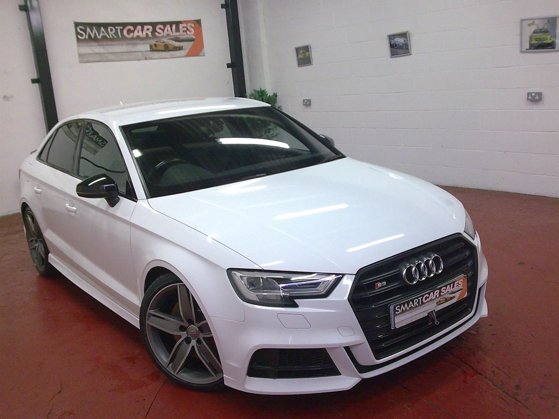 (Long Mot,Xenon Led Headlights with daytime running lights,Full Service History Including Gearbox Service/Waterpump Done,Half Leather Heated Seats,Bang and Olufsen Speakers,Rear Parking Sensors,Full Factory Virtual Cockpit,Bluetooth/DAB Radio,Wireless Charging Dock In Centre Armrest,Cruise Control,7 Speed Automatic wth paddleshift,electric opening boot,19 Inch Diamond Cut Wingarm Alloys,2 Keys,Hpi clear,Good Condition).Smart Car Sales are proud to offer a beautiful 2017 (17) Audi S3 2.0 TFSI S-Tronic Black Edition Quattro Saloon finished in beautiful metallic Ibis White with contrasting half black leather seats (best colour combo).This stunning example is the newer facelift model so benefits from having upgraded rear led headlights aswell as front xenon headlights with daytime running lights which look amazing especially a night,full electric opening boot lid via button on key,virtual cockpit,only done 90,000 miles which is nothing for these audi petrol engines and has been serviced on time aswell as having all important gearbox service and waterpump bing done with receipts,19 inch original diamond cut wingarm s3 black edition alloys,Top of the range black edition model so benefits of half leather heated seats which are more comfier than full leather and don’t get hold/cold in summer and winter,7 speed automatic with sports mode and paddleshift gears which is the best gearbox option absolute dream to drive with the smoothest of gear changes,pulls like a train aswell as being very economical,2.0 TFSI (drives like a dream with the automatic gearbox),dab radio,wireless charging dock in centre armrest,Bluetooth/sd card/usb connection,audi colour screen,Audi MMI media system,2 keys and all paperwork,fully hpi clear and priced to sell at only £15,750 making it excellent value for money.Must be seen and driven to be appreciated. If you are looking for a beautiful looked aftered Audi S3 Black Edition Automatic saloon then look no further as this car can be yours.Car can be secured with £200 deposit.Extra Warranty Available if Required.We also can Deliver at a cost.Part exchange also welcome depending on vehicle and price. Finance can be arranged if required. For more information or to arrange viewing you can contact us on: 07544896240