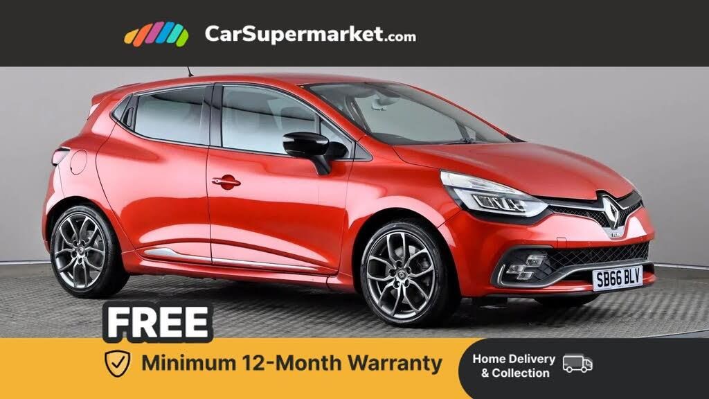 Cruise control + speed limiter,Drive mode selector,Push button starter,Renault MediaNav with 7" touch screen and Navteq Nav 'n' Go Satellite Navigation,Smartphone cradle,Trip computer,Variable PAS,Launch control,4x20W Arkamys radio with bluetooth handsfree and USB,Aux-in socket,Anthracite front bumper insert,Automatic headlights + automatic windscreen wipers,Black headlamp surrounds,Body colour door protectors with chrome insert,Body coloured bumpers,Body coloured side skirts,Electric adjustable door mirrors,Electric folding door mirrors,Electric front windows + one touch + anti-pinch,Electric rear windows,Front fog lamps,Gloss black door mirrors,Heated door mirrors,LED daytime running lights,LED Headlights,Rear wiper,Renaultsport kick plates,Renaultsport rear spoiler,Twin chromed exhaust pipes,Variable front intermittent wipers,12V Accessory socket,3 rear height adjustable headrests,60/40 split rear seats,Aluminium foot pedals,Chrome gear knob insert,Chrome interior door handles,Driver's seat height adjustment,Front cupholders,Front door storage bin,Glovebox,Height adjustable front headrests,Height/reach adjust steering wheel,Isofix system on outer rear seats,Leather gearshift/handbrake with red stitching,Multi function steering wheel,Pollen filter,Renaultsport leather steering wheel with stitched red centre band,System for Restraint and Protection SRP-front seats,3 point seatbelts on all rear seats,ABS+EBD+Brake assist,Driver and passenger front and side airbag deactivation,Driver/Front Passenger airbags,Driver/front passenger side airbags,ESP + Traction control + Understeer control,Front side airbags(head+thorax),Height adjustable driver's seatbelt,Hill start assist,Seatbelt warning,Anti-drill door locks,Child lock control of rear doors and windows,Deadlocking system,Hands free Renault card,Locking fuel filler cap,RAID (Renault Anti-Intruder Device) with automatic door locking,Remote central locking,Thatcham Cat 2 engine immobiliser,Dark carbon soft touch dashboard,Gloss black air vent surround with red insert,Tyre inflation kit,Anthracite rear diffuser,Body colour door handles,Extra tinted glass in rear windows and tailgate,Tyre pressure monitoring system,Climate Pack,Flame Red,Passenger Height Adjustment Seat