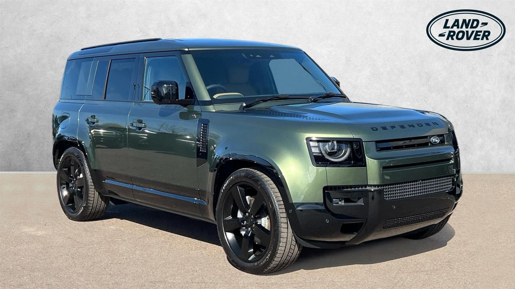 This stunning Defender 110 is presented in the new-for-2026-model-year Woolstone Green, matched with 22-inch Gloss Black Wheels and the Extended Black Exterior Pack. Our Defender 110 X-Dynamic HSE is finished in Woolstone Green matched with the Extended Black Exterior Pack and 22-inch Style 5098 wheels in Gloss Black, over Caraway Windsor leather interior, and comes equipped with a great range of fantastic features and optional extras, including, 14-way Heated and Cooled front seats with Memory function, Two-zone Climate Control, Meridian Surround Sound System, Privacy Glass, Sliding Panoramic Roof, Matrix LED Headlights, Keyless Entry, Adaptive Cruise Control, Lane Keep Assist Blind Spot Assist, 360-degree Parking Aids, 3D Surround Camera, Apple CarPlay and Android Auto, DAB Radio, Wireless Device Charging, and much more. Call today for more information. PRICE INCLUDES 4,000 GBP DEPOSIT CONTRIBUTION WHEN FUNDED WITH JLR FS..