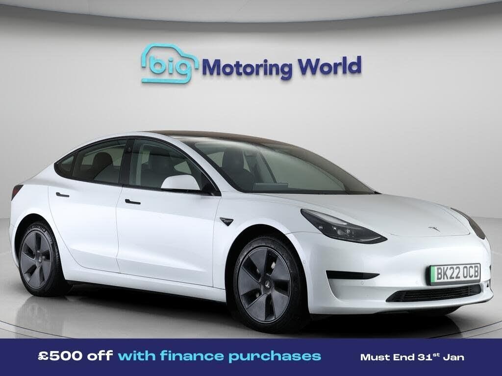 £500 towards your finance depo-Our Tesla Model 3 is finished in White. Specification includes a range of fantastic features including £500 towards your finance deposit, Adaptive Cruise Control, Heated Seats, Wireless Phone Charging, Bluetooth, Blind Spot Assist, Parking Sensors, 2 Zone Climate, Cruise Control, Climate Control Specification information is supplied by CAPHPI and may vary to the actual car. This data does not form any part of a buying contact. Please check specification prior to purchase in-store. The MOT is valid until March 2027, visit bigmotoringworld.co.uk for more photos, a 360 tour, service history and a free HPI report.Were BIG on peace of mind and this White Tesla Model 3 has completed our comprehensive 200 point inspection and passed all checks. Its ready for you to drive away with immediate collection in-store. We include a 90-day warranty as standard plus an option to extend for up to 3 years.Reserve this car exclusively for you, safely and securely at bigmotoringworld.co.uk, with a fully refundable £99 deposit. Test drive before you buy, with no commitment, no hassle and a completely haggle free experience. Still searching and want to see thousands more cars? We are BIG on choice with over 8000 cars to choose from.Visit our award winning web site bigmotoringworld.co.uk.Were Big Motoring World and were BIG on what matters to you.