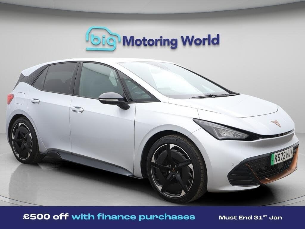 £500 towards your finance depo-Our CUPRA Born is finished in Silver. Specification includes a range of fantastic features including £500 towards your finance deposit, Head up Display, 20'' Alloy Wheels, Apple CarPlay, Massage Function Seats, Lane Assist, Android Auto, Satellite Navigation, Privacy Glass, Heated Seats Specification information is supplied by CAPHPI and may vary to the actual car. This data does not form any part of a buying contact. Please check specification prior to purchase in-store. The MOT is valid until January 2027, visit bigmotoringworld.co.uk for more photos, a 360 tour, service history and a free HPI report.Were BIG on peace of mind and this Silver CUPRA Born has completed our comprehensive 200 point inspection and passed all checks. Its ready for you to drive away with immediate collection in-store. We include a 90-day warranty as standard plus an option to extend for up to 3 years.Reserve this car exclusively for you, safely and securely at bigmotoringworld.co.uk, with a fully refundable £99 deposit. Test drive before you buy, with no commitment, no hassle and a completely haggle free experience. Still searching and want to see thousands more cars? We are BIG on choice with over 8000 cars to choose from.Visit our award winning web site bigmotoringworld.co.uk.Were Big Motoring World and were BIG on what matters to you.