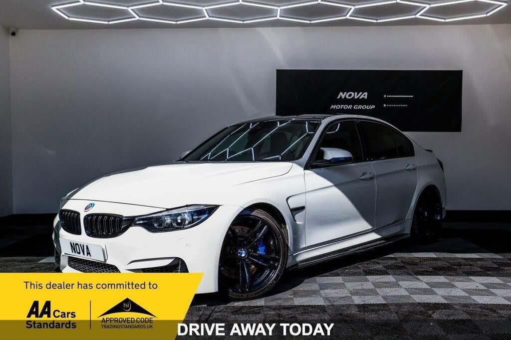 12V Power Socket in Front Centre Console and Passenger Footwell, 19in Alloy Wheels - M Light Double Spoke Style - 437M - Ferric Grey, 8 Programmable Favourite Buttons, Active M Differential, Adaptive M Suspension, Air Breather, Air Conditioning - Automatic with Two-Zone Control, Airbags, Alarm System - Thatcham 1 with Remote Control and Engine Immobiliser, Armrest - Front with Sliding Adjustment, Automatically Dimming Rear View Mirror, BMW ConnectedDrive Online Services, BMW Emergency Call, BMW Professional Radio with Single CD Player - with MP3 Playback Compatibility, BMW TeleServices, Battery Safety Cut Off, Bottle Holders Integrated into Door Trim Storage Compartments - Front - Up to 1 litre, Brake Pad Wear Indicator - Front and Rear, Bumper System - Front and Rear, Carbon-Fibre Reinforced Plastic - CFRP - Roof, Central Locking Switch - Doors - Fuel Filler Cap - Luggage Compartment, Check Control Warning System for Monitoring of Lights and Door-Luggage Compartment Open Warning, Child Proof Locking System - Rear Doors, Child Seat ISOFIX Attachment - Rear with Passenger Airbag Deactivation, Condition Based Service, Crash Sensor, Cruise Control with Brake Function, Cup Holders - Front - Two with Removable Oddments Tray-Lid, DAB Digital Radio, DSC - Dynamic Stability Control Plus, Direction Indicator - Side Repeaters - Integrated in Exterior Mirrors, Direction Indicator Lights - Clear Lenses LED, Display - 8.8in Colour Screen, Door Sill Finishers - M Designation, Dynamic Brake Lights, EPS - Electric Power Steering, Electric Windows - Front and Rear with Open-Close Fingertip Control - Anti-Trap Facility and Comfort Closing Function, Enhanced Bluetooth Telephone Preparation with Wireless Charging, Exhaust Tailpipes - Quad - Chrome, Extended Lighting, Exterior Parts in Body Colour, Exterior Trim - High-Gloss Shadowline, First Aid Kit and Warning Triangle, Floor Mats - Velour, Folding Side Mirrors with Auto-Dimming, Full Black Panel Display, Gearshift Lever with M Badge, Glove Box, Grab Handles - Integrated in Roof Lining x4, Handbrake Lever - Gear Knob in Artificial Leather, Headlining - Anthracite, Heat Protection Glazing with Green Tint, High Level Third Brake Light, Interior Lighting - Front Centre Over Interior Mirror with Soft-Light and Rear Centre, Interior Trim Finisher - Blue Shadow with Black High Gloss Finisher, Kidney Grille - Chrome with Double Black Vertical Slats and M3 Badging, LED Headlights, LED Tailights, Lights-On Warning by Audio Warning Signal When Ignition is Switched Off, Luggage Compartment - Lashing Eyes, Luggage Compartment - Light, Lumbar Support - Driver and Front Passenger, M Aerodynamics Package, M Designation, M Drive Manager, M Instrument Cluster, M Mobility Tyre Sealing System, M Rear Lip Spoiler, M Servotronic, M-Specific Rear Seat with Two Integrated Headrests and One Removable Centre Headrest, M-Specific Seats for Driver and Passenger, Media Package - BMW Professional, Model Designation, Navigation System - BMW Professional Multimedia, Non Smokers Package, OBC - On-Board Computer, Oil Sensor For Level and Grade - Warning by Check Control System, Optimum Shift Indicator, PDC - Park Distance Control - Front and Rear, Personal Profile, Rain Sensor with Automatic Headlight Activation, Real Time Traffic Information, Rear Backrest - Lightweight Construction - Foldable and 60:40 Dividable, Rear Fog Light, Rear Suspension - Five-Link, Remote Control Including Integrated key with Inset in Chrome - 2, Remote Services, Seat Adjustment - Front Electric with Driver Memory, Seat Belt Security Check for Driver, Seat Heating for Driver and Front Passenger, Seats - Backrest Width Adjustment - Front, Shark Fin, Side Armrests - Front and Rear Integrated into Door Trim, Side Impact Protection, Start-Stop Button with Comfort Go Keyless Engine Start and Auto Start-Stop Deactivation Button, Steering Column with Manual Reach and Rake Adjustment, Steering Wheel - M Leather Multi-Function - Three Spoke with Three Colour M Stitching, Storage Compartment in Rear Centre Console, Sun Visors with Illuminated Vanity Mirrors and Ticket Pocket, Suspension - Front Aluminium, Three-Point Seat Belts - All Seats, Toolkit Located in Luggage Compartment, Twin Horns, Tyre Puncture Warning System - TPWS, Visible VIN, Welcome Light, WiFi Hotspot Preparation, Windscreen Washer Jets - Heated, Windscreen Wipers - Two-Speed with Adjustable Intervals, Wireless Charging Cradle Located in Front Centre Armrest Storage Compartment, iDrive Touch Controller with Shortcut Buttons, Active Security Package, Concierge Service, Driving Assistant, Full Merino Leather - Black, Head-Up Display, Headlight Wash, Interior Trim Finisher - Carbon Fibre with Black Chrome Finisher, Lane Change Warning System, Loudspeaker System - Harman Kardon, Mineral White, Reversing Assist Camera, Speed Limit Display, Sun Protection Glazing