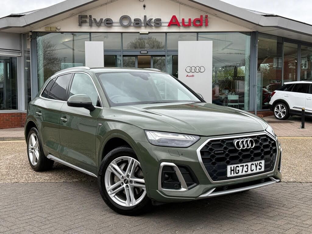 1 OWNER, FULL AUDI SERVICE HISTORY, TECHNOLOGY PACK, BANG & OLUFSEN PREMIUM SOUND SYSTEM, REVERSING CAMERA, EXTENDED LED INTERIOR LIGHTING, WIRELESS PHONE CHARGING, BLACK FINE NAPPA LEATHER WITH DIAMOND STITCHING UPHOLSTERY, HEATED FRONT SEATS, SATELLITE NAVIGATION, MMI TOUCHSCREEN, AUDI VIRTUAL COCKPIT, BLUETOOTH CONNECTIVITY, DAB RADIO, AUDI SMARTPHONE INTERFACE WITH APPLE CARPLAY AND ANDROID AUTO, VOICE CONTROL, THREE ZONE CLIMATE CONTROL, 40/20/40 SPLIT FOLDING REAR SEATS, AUDI DRIVE SELECT, AUTO ELECTRIC PARKING BRAKE, POWER TAILGATE, MATRIX LED HEADLIGHTS, 20-INCH ALLOY WHEELS, PRIVACY GLASS, ELECTRICALLY FOLDING/HEATED WING MIRRORS, FRONT AND REAR PARKING SENSORS, PARKING ASSIST, CRUISE CONTROL WITH SPEED LIMITER, LANE DEPARTURE WARNING, HILL HOLD ASSIST, AUDI PRE SENSE, EMERGENCY SOS, QUATTRO, EURO 6, ULEZ.All Audi Approved used cars are offered with a 12-month warranty and roadside assistance.Five Oaks Audi are delighted to offer this 2023 Audi Q5 S line 45 TFSI quattro 265 PS S tronic in District Green over Black Fine Nappa Leather with Diamond Stitching and has completed just 18,033 miles. We are proud to be part of the Harwoods group, a family run business established in 1931. With four Approved Audi retailers within our group, we have access to over 400 vehicles. If this isn't the right car for you, please contact us and we will find it.If this isn't the right car for you our Group stock has specification to include Sunroof, Leather, Heated Seats, Apple Car Play, Heated Steering Wheel, Reverse Camera, Rear Entertainment, Deployable Towbar, 360-degree camera, Comfort & Sound Pack, Tech Pack, Panoramic Sun Roof, Tow Bar, Black Pack, Air Suspension, Apple Carplay, Adaptive Cruise, Massage Seats, Refrigerator, AWD, Technology Pack, Head up Display, Vorsprung, Technik, Black Edition, S-Line, S Line, Edition 1, TFSI, Quattro, Sportback, LWB. Other colour options including Black, Blue, Green, Silver, White, Red, Grey, Yellow, Orange. Interior options of Ebony, Black, Ivory, White, Tan, Cream, Oyster, & Euro 6 ULEZ compliant drive trains.-TECHNOLOGY PACK-PERSONALISED FINANCE PLANS AVAILABLE, PART EXCHANGE WELCOME & NATIONWIDE DELIVERY AVAILABLE