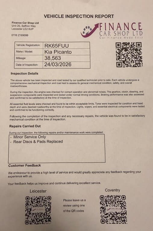 CAT S IN 2017, JUST SERVICED This Kia Picanto 1.0 EcoDynamics 2 (Euro 5) 5-door is a stylish and practical city car with excellent fuel economy and low running costs. Perfect for first-time drivers, commuters, or anyone looking for an affordable and reliable hatchback.Key Features:1.0L Petrol Engine Great fuel efficiencyEcoDynamics Start/Stop technology Improved economy and lower emissions5 Doors Practical and convenient Low insurance group Ideal for new driversCompact size Easy to drive and park in the cityEquipment Includes:Air conditioning AUX portsElectric windowsRemote central lockingSteering wheel mounted controlsHighlights:Reliable and economical engineComfortable interior with good space for a city carCheap to maintain and run+ 6 MONTHS WARRANTY INCLUDED + 6 MONTHS BREAKDOWN COVER + EXTENDED WARRANTY AVAILABLE + FINANCE OPTIONS AVAILABLE UPON REQUEST + DELIVERY CAN ONLY BE ARRANGED ONCE THE VEHICLE HAS BEEN VIEWED & INSPECTED IN PERSON AT OUR PREMISES + PHOTO ID IS REQUIRED FOR ALL VIEWINGS AND TEST DRIVES + WE CAN BE REACHED VIA WHATSAPP ON 07458 300017 FEEL FREE TO MESSAGE US + PLEASE NOTE, THE PRICE IS FIXED ON THIS VEHICLE. KINDLY BE AWARE OF THIS PRIOR TO ARRANGING A VIEWING + WE HAVE OVER 50 VEHICLES IN STOCK. AS NOT ALL VEHICLES ARE HELD ON SITE, PLEASE ENSURE YOU CALL IN ADVANCE BEFORE MAKING YOUR JOURNEY + BANK TRANSFER ONLY + MORE CARS AVAILABLE AT:WWW.FINANCECARSHOPLTD.CO.UK +-CAT S IN 2017-+ WHATSAPP US ON 07458 300017 + OPEN 7 DAYS A WEEK + BANK TRANSFER ONLY + VIEWING BY APPOINTMENT +