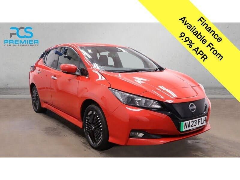 8in Colour Display with Touch Screen, Android Auto and Apple CarPlay, Audio System with 6 Speakers, Bluetooth with Audio Streaming, Digital Radio - DAB, EV Connect Telematics System, Navigation System with Voice Control, NissanConnect Services App, Rear USB Ports, Shark Fin Antenna, USB Port, Blind Spot Intervention, Intelligent Cruise Control, Lane Departure Warning, TPMS - Tyre Pressure Monitoring System, 17in Alloy Wheels - Black Diamond Cut, Body Coloured Door Mirrors, Charging Port Remote Opening, Door Handles - Chrome, Front Electric Windows, Integrated Turn Signals in Mirrors, Rear Bumper Finisher - Grey, Rear Privacy Glass, Roof Spoiler - Aero, Front Fog Lights, Headlights - Follow Me Home Function, Headlights - High Beam Assist, Intelligent Auto Headlights, LED Signature Daytime Running Lights, LED Signature Tail Lights, 7in Combimeter, Auto Dimming Rear View Mirror, Automatic Climate Control with Pollen Filter and Timer, Heat Pack, Illuminated Charge Port, Leather Steering Wheel, Multifunctional Steering Wheel, Rain Sensing Windscreen Wipers, Tech Pack, Telescopic Steering Wheel Adjustment, 50kW CHAdeMO Quick Charger, 6.6kW AC On Board Charger, 6m Type 2 Cable, Electric Power Steering, Energy-Saving Cabin Heating System with Heat Pump, E-Pedal, MacPherson Strut Front Suspension and Twist Beam Axle Rear Suspension, Speed Limiter, 6 Airbags, ABS with EBD and Brake Assist, Alarm - Thatcham, Auto Hazard Lights, Electrically Driven Intelligent Braking System, ESP - Electronic Stability Programme, Hill Start Assist, Immobiliser, Intelligent Emergency Braking with Pedestrian Recognition, Intelligent Key with Start Push Button, Intelligent Lane Intervention, Intelligent Ride Control, Intelligent Trace Control, ISOFIX on Rear, Rear Cross Traffic Alert, Rear Door Child Locks, Remote Central Locking with Deadlocking