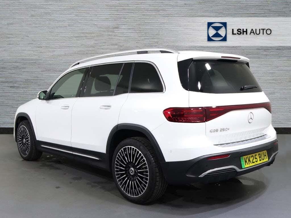 This 2025 Mercedes-Benz EQB 250+ AMG Line (Premium) is a Mercedes-Benz manufacturer approved vehicle with only one owner and a full service history, offering peace of mind. This electric SUV boasts an AMG Line trim and provides seating for seven, making it a versatile choice for families. With a battery total capacity of 78 kWh, it offers a maximum range of 298 miles when new. Notable features include heated front seats, LED High Performance Headlights with Adaptive Highbeam Assist, Hands Free Access for keyless entry, and THERMOTRONIC automatic climate control. The vehicle has a low mileage of just 9166 miles for its age, and its MOT is valid until August 2028.The Mercedes-Benz EQB 250+ AMG Line (Premium) stands out with its impressive electric capabilities and practical design. A full charge at home using a 7kW charger takes approximately 10 hours and 45 minutes, while rapid public charging can take the battery from empty to 80% in just 36 minutes. The generous boot space further enhances its practicality for everyday use and longer journeys. These aspects, combined with its manufacturer approval and single owner provenance, indicate that this EQB offers a superior ownership experience compared to similar vehicles on the market. A 12 month warranty is also included.-7-SEATS, PREMIUM, SAT NAV-Mercedes-Benz Eqb EQB 250+ 140kW AMG Line Premium 70.5kWh 5dr Auto-LSH Auto UK Ltd - An LSH Group Company. The Worlds Largest Retailer of Mercedes-Benz Passenger Cars