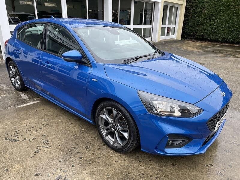 Blind Spot Information System,Chrome Blue, Ford SYNC with 8in TFT Touchscreen, Cruise Control with Speed Limiter, Pre-Collision Assist with Autonomous Emergency Braking and Pedestrian-Cyclist Detection, Pre-Collision Assist with Pedestrian Detection, Selectable Drive Mode, Trip Computer, Tyre Pressure Monitoring System, 17in Alloy Wheels - 5x2-Spoke - Rock Metallic, Body Colour Bumpers, Door Handles - Body Colour, Door Mirrors - Heated - Electric - Integrated Side Indicators - Body Coloured, Ford Easy Fuel System, Large Body Coloured Rear Spoiler, Polished Twin Tailpipe, Quickclear Heated Windscreen, Spare Wheel - Mini Steel, Unique ST-Line Upper and Lower Grille and Full Bodystyling Kit and ST-Line Wing Badges, Windows - Electrically Operated Front and Rear with One Touch Opening and Closing, Halogen Reflector Headlights, Headlights - Automatic On-Off, LED Daytime Running Lights, LED Front Fog Lights with Cornering Function, Alloy Finish Pedals, Centre Console with Armrest, Dark Headliner, Flat Bottomed Steering Wheel with Red Stitching, Front Floor Mats, Front Seat - Drivers Manual Lumbar Support Adjustment, Keyless Start with Ford Power Start Button, Manual Air Conditioning, MyKey, Paddle Shift, Rear Centre Headrest, Rear Seats - Auto Fold, Steering Wheel - 3-Spoke - Leather Trimmed, Rotary Gear Shift Dial, Sports Tuned Suspension, Airbags - Driver and Front Passenger, Airbags - Front and Rear Side Curtain, Airbags - Front Side Impact, Electric Parking Brake, ESC - Electronic Stability Control, Front and Rear Seatbelt Minder, Front Passenger Airbag Deactivation Switch, Lane Keeping Aid with Lane Departure Warning, Post Collision Braking, Remote Central Locking and Engine Immobiliser, Thatcham Category 1 Alarm
