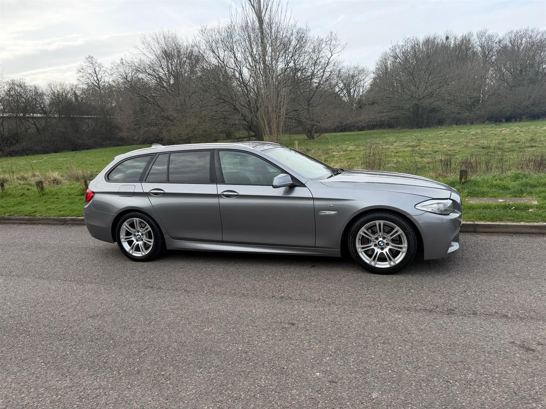 13 Reg - Space Grey with Full Black Leather Trim, This 525d M Sport Touring comes with a nice high specification which includes: Factory Colour Satellite Navigation, DAB Radio, Bluetooth, Heated Seats, Dual Climate Control, Cruise Control, Trip Computer, CD Player with Fingertip Controls, Auto Lights, Auto Dipping Mirror, Leather Steering Wheel, Airbags, ISO-Fix Seating, 18'' Alloy Wheels, Front Fogs, it comes with a lovely service history (11 services) and a nice long MOT until the 10th November 2026 (now with no advisories as we have repaired the oil leak advisory), a fantastic value for money 525d M Sport Touring Automatic, drives superbly so any inspection welcome, HPI Clear, Part Exchange up or down welcome. **Debit/Credit Cards Accepted** **Open 6 Days a week** **POOR CREDIT NO PROBLEMS - Finance available (subject to status)** (*Sometimes we may still reserve the right to not offer unaccompanied test drives).