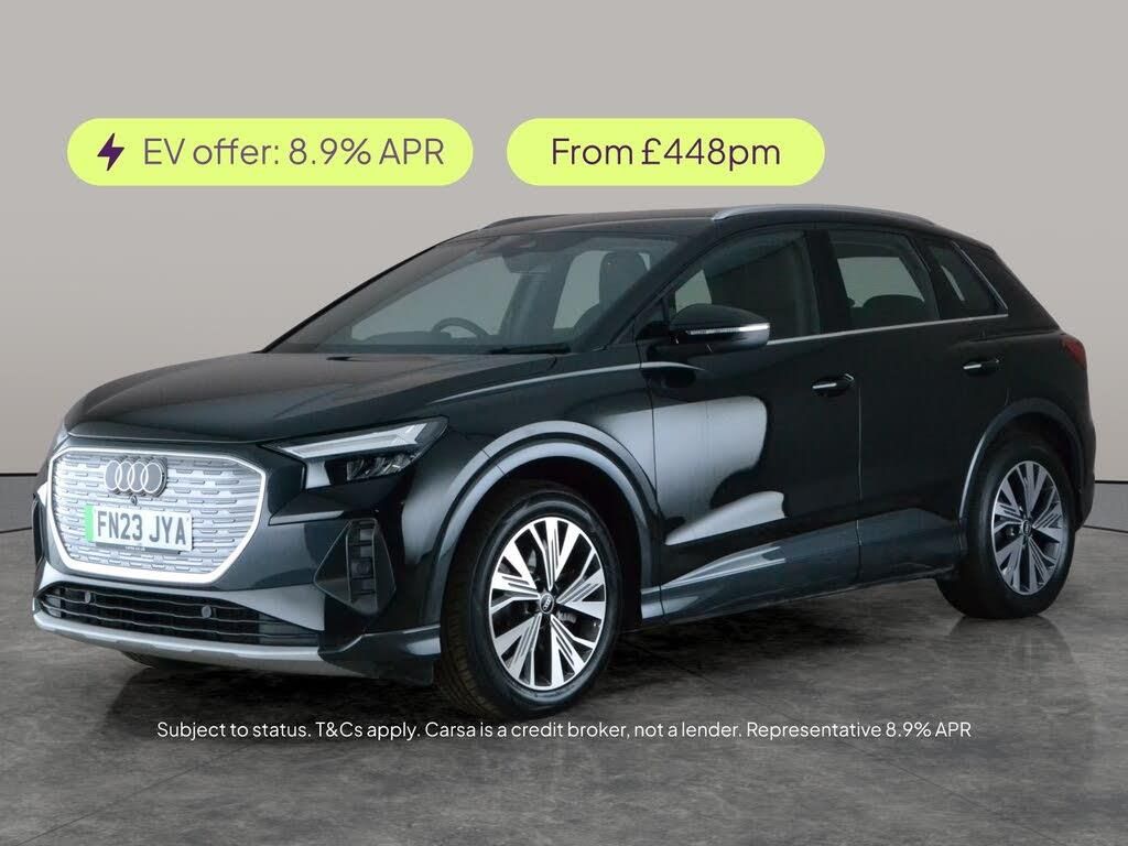 Experience the thrill of electric driving with the Audi Q4 E-tron Sport SUV. Enjoy the immersive upgraded sound system, crisp LED headlights, heated seats for comfort, and the full MMI Navigation Plus for effortless journeys. Advanced features like adaptive cruise control, traffic sign recognition, lane departure warning, and a reversing camera make every drive safer and easier. Stay connected with Bluetooth and relax with smart driving modes and dual-zone air conditioning. Embrace style and innovation in this striking black Audi Q4 E-tron. 1 service recorded, last serviced on 04/03/2025 at 9,082 miles. MOT to 26/03/2027. Visit our website for service history, online valuation, full vehicle specification plus multiple images. Certain features listed may be available via subscription packages at extra costs, please consult with Audi for details. This vehicle is VAT qualifying. Any feature/option specified here is from 3rd party data. We cannot guarantee the accuracy of any specification supplied by a 3rd party. We recommend that you physically check the specification of the vehicle on site prior to purchase. This information does not form part of the buying contract. Terms & Conditions apply. We have over 2,000 cars available from our 10 national branches, check our website to see all our stock. Our Trustpilot rating is 4.4/5 with over 9,000 reviews.