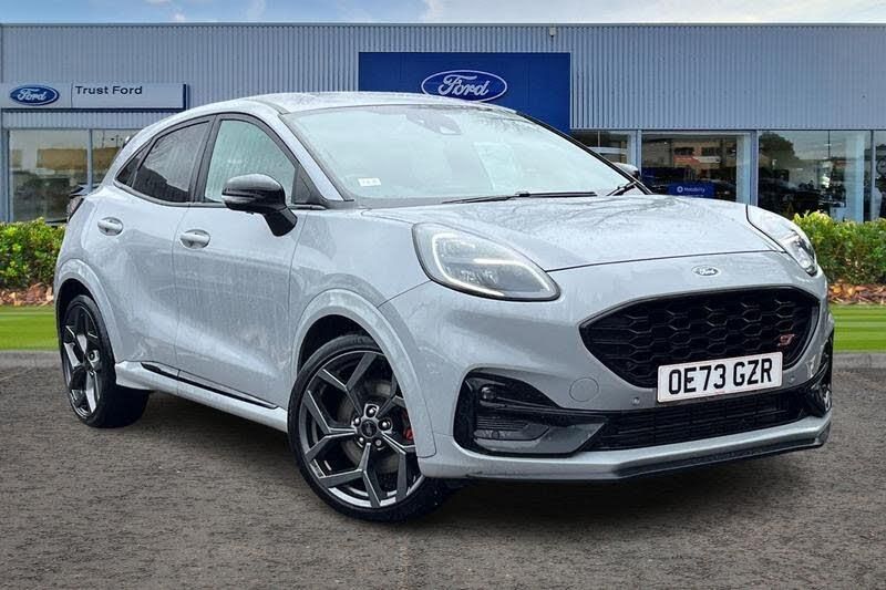 Cruise control with Intelligent speed assist, Driver impairment monitor, Emergency call service, Ford easy fuel, Front and rear parking sensors, Full digital 12.3 instrument cluster, Lane keeping aid with lane departure warning, Power assist steering, Selectable drive modes (normal, sport, eco, track), Speed sign recognition, Automatic headlights with auto high beam, Automatic rain sensing wipers, Dual chrome exhaust, Fixed LED signature headlamps, Front fog lamps, LED daytime running lights, LED rear lamps, Power foldable heated door mirrors with puddle lamps and puma logo protection, Privacy glass to side rear windows and tailgate glass, Quickclear heated windscreen, Rear side wing doors, Rear wiper, ST scuff plates, Third brake light, Unique ST body styling kit including wing mirrors and Ford Performance embossed splitter, 3 seat bench in 2nd row, Alloy sports pedals, Centre console with armrest and stowage, Ford megabox extended bootspace, Ford Performance sensico partial premium leather upholstery with metal grey stitching, Front and rear floor mats, Front and rear head restraints, Manual 6 way driver seat adjust with lumbar adjustment, Manual 6 way passenger seat with lumbar seat adjustment, Single front passenger seat, ST flat bottomed steering wheel with metal grey stitching, ST logo projection, Unique ST gear shift knob, Wireless charging pad with electronic air temperature control (EATC), 3 rear seatbelts, Child safety lock, Electronic stability control (ESC) and hill start assist, Pedestrian/cyclist detection & post-collision braking, Pre collision assist system, Red brake calipers, Tyre pressure monitoring system (TPMS)