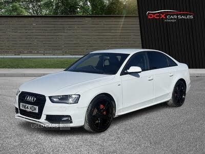 Auto boot lid opening, Driver information centre with colour display in instrument panel, Electro-mechanical PAS, Service interval indicator, Aux input, DAB digital radio module, Acoustic windscreen, Auto dimming rear view mirror, Automatic headlights + automatic windscreen wipers, Body colour bumpers, Body colour door handles, Body colour door mirrors, Chrome fog light surround, Chrome rolled exhaust, Electric front windows, Electric heated door mirrors, Electric rear windows, Front fog lights, Headlight range control, Headlight washer jets, LED daytime running lights, S line sill plates, Xenon headlights, 12V socket in luggage compartment, 3 zone climate control, Aluminium door sill trims, Black headlining, Driver's seat height adjustment, Electric front lumbar support with horizontal and vertical adjustment, Front and rear headrests, Front centre armrest with 12v socket, Front sport seats, Isofix child seat preparation for front passenger/outer rear seats inc passenger airbag deactivation, Perforated leather gearknob, Reach + rake adjustable steering column, Rear armrest, Split folding rear seats, Tool kit, Top tether anchor plate for isofix child seat, Exterior aluminium pack - A4, Interior chrome pack - A4, S line exterior styling pack - A4 Saloon, 3 point rear seatbelts x3, ABS/EBD, Adaptive driver and front passenger airbags, Electromechanical parking brake, ESP, First aid kit, Front seatbelt pretensioners + load limiters, Front side airbags, Traction control, Tyre pressure monitoring system, Warning triangle, Intelligent Key, Locking wheel bolts, Remote central locking, Thatcham category 1 alarm + immobiliser, Space saver spare wheel