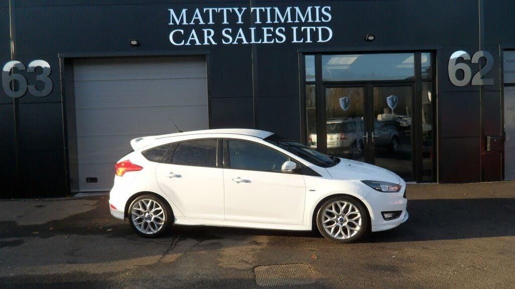 Ford SYNC3 DAB Navigation System, Frozen White, Rear Privacy Glass, 17in Alloy Wheels - 5-Spoke with Rock Metallic Finish, Air Conditioning - Manual, Alarm - Thatcham Category 1 with Volume Sensing and Perimeter, Black Exterior Trim Detailing including Upper Door Line and Headlamp Surround, Body Colour Large Rear Spoiler and Side Skirts, Body Coloured Front Styling Kit with Centre Aero Foil, Brake Warning Lights - Automatic Flashing of Brake Lights Under Heavy Braking, Centre Console, Colour TFT Instrument Cluster Display, Courtesy Light - Front and Rear Passengers - Overhead Halogen and Load Compartment, Door Mirrors - Heated - Electric - Integrated Side Indicators - Body Coloured, EPAS - Electric Power Assisted Steering, Electronic Stability Programme - ESP - with Traction Control and Emergency Brake Assist - EBA, Ford Easy-Fuel Capless Refuelling System, Ford Eco Mode - Driver Information System, Ford Power Start Button, Front Floor Mats, Front Fog Lights, Front Seat - Drivers Manual Height and Fore-Aft Adjustment, Front Seat - Drivers Manual Lumbar Support Adjustment, Front Seat - Passenger Manual Fore-Aft Adjustment, Front Seats - Sports Style, Front Suspension - Independent with MacPherson Struts and Anti-Roll Bar, Gearshift Knob - Leather, Halogen Headlights with Black Surround, Headlights - LED Daytime Running Lights, Headliner - Black Woven, IPS - Intelligent Protection System, Interior Door Lever - Chrome Finish, Leather-Trimmed Handbrake, Locking Wheel Nuts, MyKey, Quickclear Heated Front Windscreen with Heated Washer Jets, Rear Bumper with Integral Body Coloured Diffuser and Honeycomb Mesh in High-Gloss Black, Rear Lights - LED, Rear Seat - 60-40 Split Back and Cushion, Rear Suspension - Independent Control Blade Multi-Link System and Anti-Roll Bar, Remote Central-Double Locking, SYNC3 with 8in Touchscreen DAB Audio System, Scuff Plates - Front Stainless Steel Finish with ST-Line Logo, Spare Wheel - Mini Steel, Sports Style Pedals - Gear Knob and Steering Wheel, Steering Column - Rake and Reach Adjustment, Steering Wheel - 3 Spoke - Leather Trimmed, Suspension - Sports, TVC - Torque Vectoring Control, Trip Computer, Tyre Pressure Monitoring System, Upper and Lower Grille - High Gloss Black Honeycomb Design, Windows - Electrically Operated Front with One Touch Lowering on Drivers Side, Wipers - Standard with 6 Speed Interval Settings