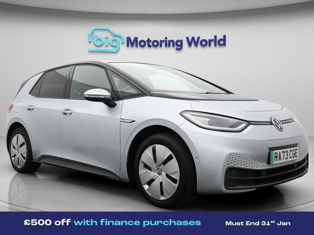 £500 towards your finance depo-Our Volkswagen ID.3 comes with optional extras worth £665. Specification includes a range of fantastic features including £500 towards your finance deposit, Head up Display, Apple CarPlay, Adaptive Cruise Control, Lane Assist, Android Auto, Satellite Navigation, Privacy Glass, Heated Seats, Gesture Control Specification information is supplied by CAPHPI and may vary to the actual car. This data does not form any part of a buying contact. Please check specification prior to purchase in-store. The MOT is valid until December 2026, visit bigmotoringworld.co.uk for more photos, a 360 tour, service history and a free HPI report.Were BIG on peace of mind and this Silver Volkswagen ID.3 has completed our comprehensive 200 point inspection and passed all checks. Its ready for you to drive away with immediate collection in-store. We include a 90-day warranty as standard plus an option to extend for up to 3 years.Reserve this car exclusively for you, safely and securely at bigmotoringworld.co.uk, with a fully refundable £99 deposit. Test drive before you buy, with no commitment, no hassle and a completely haggle free experience. Still searching and want to see thousands more cars? We are BIG on choice with over 8000 cars to choose from.Visit our award winning web site bigmotoringworld.co.uk.Were Big Motoring World and were BIG on what matters to you.
