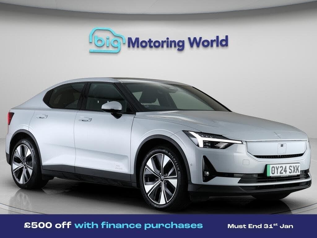 £500 towards your finance depo-Our Polestar Polestar 2 is finished in Silver. Specification includes a range of fantastic features including £500 towards your finance deposit, Dynamic Chassis Control, Panoramic Roof, Harman Kardon Speakers, Premium Sound System, Heated Seats, Gesture Tailgate, Heated Rear Seats, Heated Steering Wheel, Internet Specification information is supplied by CAPHPI and may vary to the actual car. This data does not form any part of a buying contact. Please check specification prior to purchase in-store. The MOT is valid until March 2027, visit bigmotoringworld.co.uk for more photos, a 360 tour, service history and a free HPI report.Were BIG on peace of mind and this Silver Polestar Polestar 2 has completed our comprehensive 200 point inspection and passed all checks. Its ready for you to drive away with immediate collection in-store. We include a 90-day warranty as standard plus an option to extend for up to 3 years.Reserve this car exclusively for you, safely and securely at bigmotoringworld.co.uk, with a fully refundable £99 deposit. Test drive before you buy, with no commitment, no hassle and a completely haggle free experience. Still searching and want to see thousands more cars? We are BIG on choice with over 8000 cars to choose from.Visit our award winning web site bigmotoringworld.co.uk.Were Big Motoring World and were BIG on what matters to you.
