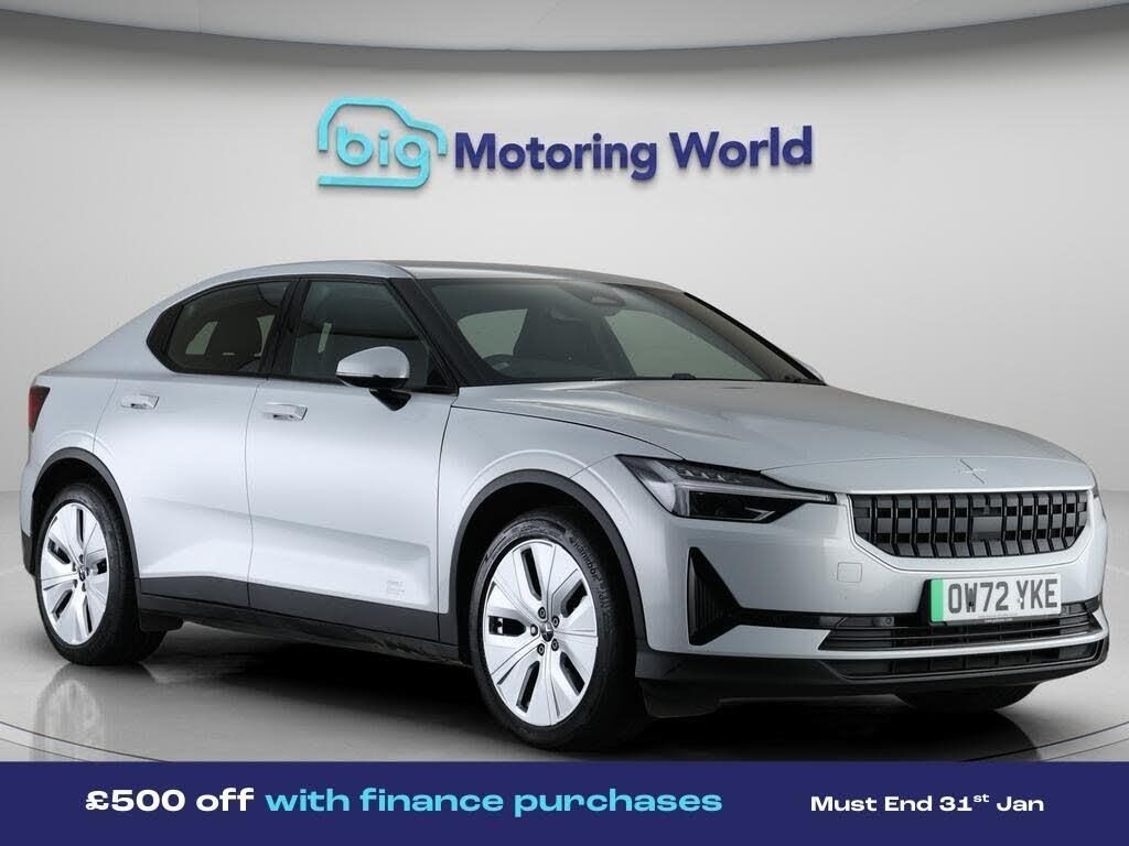 £500 towards your finance depo-Our Polestar Polestar 2 is finished in Silver. Specification includes a range of fantastic features including £500 towards your finance deposit, Dynamic Chassis Control, Electric Seats, Heated Seats, Rear View Camera, Internet, Bluetooth, Adaptive LED Headlights, 2 Zone Climate, Cruise Control Specification information is supplied by CAPHPI and may vary to the actual car. This data does not form any part of a buying contact. Please check specification prior to purchase in-store. The MOT is valid until February 2027, visit bigmotoringworld.co.uk for more photos, a 360 tour, service history and a free HPI report.Were BIG on peace of mind and this Silver Polestar Polestar 2 has completed our comprehensive 200 point inspection and passed all checks. Its ready for you to drive away with immediate collection in-store. We include a 90-day warranty as standard plus an option to extend for up to 3 years.Reserve this car exclusively for you, safely and securely at bigmotoringworld.co.uk, with a fully refundable £99 deposit. Test drive before you buy, with no commitment, no hassle and a completely haggle free experience. Still searching and want to see thousands more cars? We are BIG on choice with over 8000 cars to choose from.Visit our award winning web site bigmotoringworld.co.uk.Were Big Motoring World and were BIG on what matters to you.