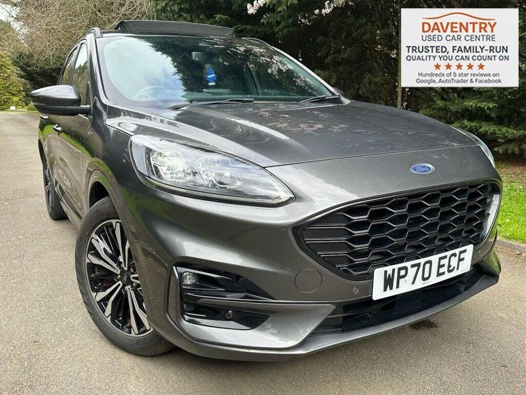 Just arrived into stock, this stunning 2020 Ford Kuga ST-Line finished in Magnetic Grey is a real standout with only 30,000 miles from new and just 1 former keeper. This is a fantastic example with a huge specification, combining sporty styling with comfort and practicality. The vehicle comes equipped with a multifunction touchscreen colour display including satellite navigation, Bluetooth connectivity, and a colour reversing camera, alongside front and rear parking sensors making it extremely easy to manoeuvre. Inside, youll find half leather interior with red stitching, heated front and rear seats, and a heated steering wheel perfect for all seasons. This Kuga benefits from keyless entry, automatic lights and wipers, cruise control, lane assist, air conditioning, and a multifunction steering wheel. The full electric panoramic glass sunroof floods the cabin with light and really enhances the premium feel of the car. Externally, it sits on upgraded 19in 5 spoke pear grey magnetic alloy wheels, giving it a sporty and aggressive stance, complemented by electric windows and electric door mirrors. Supplied with 2 keys, long MOT, and prepared to a high standard. A superb low mileage example with an excellent specification not one to be missed. All vehicles are HPI clear and prepared to a high standard, with warranty options available, finance available, part exchange welcome, and nationwide delivery available.