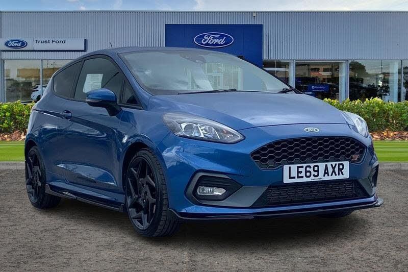 Bluetooth system, Cruise control, Drive mode selector, Electric power steering, Ford easy fuel, Trip computer, Auto dimming rear view mirror, Body colour bumpers, Body colour door handles, Body colour electric adjustable heated door mirrors with integral indicators, Body colour large rear spoiler, Chrome lower window surround, Cornering front fog lights, Electric front windows/one touch facility, LED Night signature to rear lights, LED rear lights, Power foldable door mirrors with puddle lights, Privacy glass, Quickclear heated windscreen, Rain sensing wipers and auto dimming rear view mirror, Rear privacy glass, Rear wiper, Rugged body styling kit with active front wing badges, Tinted glass, Unique ST-Line upper grille & full bodystyling kit with ST-Line wing badges, 12V Accessory socket in centre console, 3 spoke flat bottomed leather steering wheel with red stitching, 60/40 split folding rear seat, Adjustable head restraints, Ambient lighting, Black headlining, Boot carpet, Centre console with armrest and illuminated cupholders, Chrome inner door handles, Drivers and Passenger lumbar support, EATC - Electronic Auto Temperature control, Floor mats with grey stitching, Footwell illumination, Front map reading lights, Front seat and rear pockets, Front/rear floor mats, Illuminated glovebox, Leather gear knob, Leather trimmed handbrake handle, Load area light, Overhead console with sunglasses holder, Pollen filter, Rake/reach adjustable steering wheel, Rear centre head restraint, Recaro part leather front sports seats, Sports pedals, 3 point seatbelts on all rear seats, ABS+EBA, Curtain airbags, Driver and passenger airbags, Drivers knee airbag, Electronic stability control with hill start assist, Front passenger airbag deactivation, Front side airbags, Seatbelt warning, Tyre pressure monitoring system