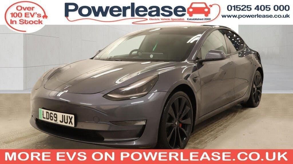 Experience exhilarating electric performance with this 2019 Tesla Model 3 Performance, a four wheel drive electric vehicle boasting a substantial 82 kWh battery. This Model 3 offers a maximum range of 329 miles from new, making it ideal for both daily commutes and longer journeys. Charging at home with a 7kW charger takes approximately 12 hours for a full charge, while rapid public charging can replenish the battery from empty to 80% in as little as 26 minutes. Inside, you'll find comfort and convenience with 12 way power adjustable front and rear heated seats, a fixed panoramic glass roof, and keyless entry and go. Safety and driver assistance are enhanced by blind spot information and rear parking sensors. The Tesla Model 3 Performance truly stands out with its impressive acceleration, achieving 0 to 60 miles per hour in a remarkable 3.2 seconds. This rapid acceleration capability places it in a league of its own compared to many other vehicles in its class. The combination of its long electric range, fast charging capabilities, and advanced features ensures a sophisticated and efficient driving experience. BATTERY HEALTH CHECK AVAILABLE ON REQUEST | SPECIALIST EV EXTENDED WARRANTIES | ALL VEHICLES FULLY INSPECTED | ALL VEHICLES SERVICED & MOT'ED | HPI CHECKED AND CERTIFIED | FINANCE AVAILABLE | PART EXCHANGE AVAILABLE | CLICK AND COLLECT AVAILABLE | HOME DELIVERY AVAILABLE | BUY ONLINE VIA OUR WEBSITE WWW.POWERLEASE.CO.UK | IN BUSINESS FOR OVER 20 YEARS EST 2000 |