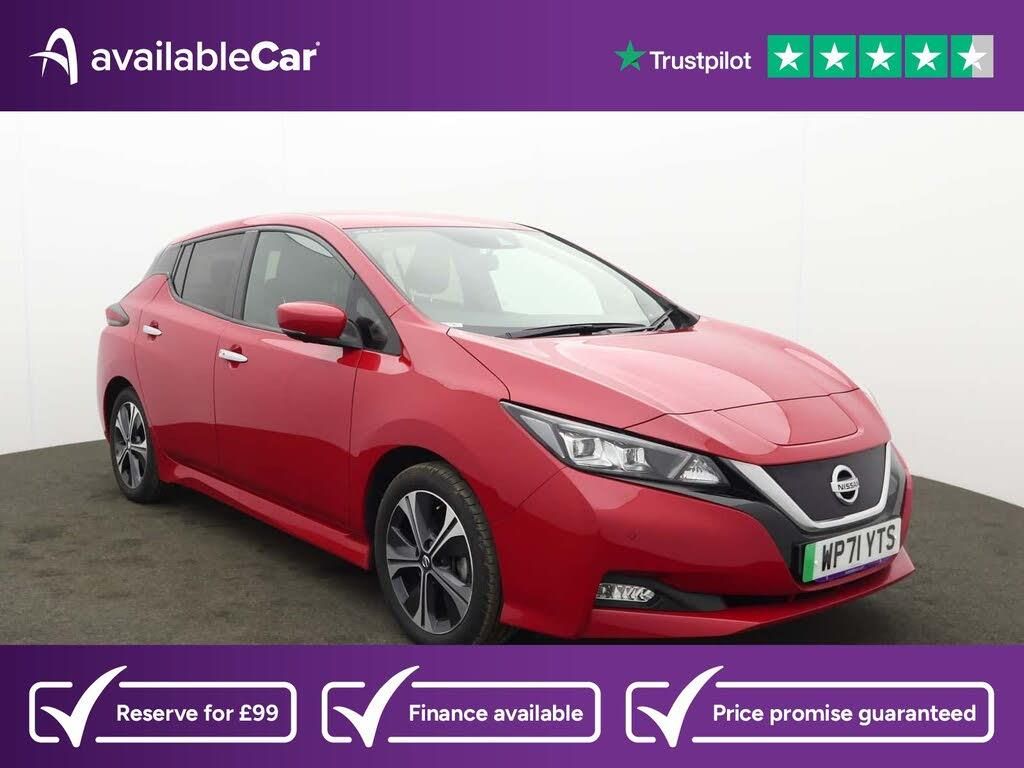 12V Socket,17in Alloy Wheels,50kW CHAdeMO Quick Charger,6 Airbags,6.6kW AC On Board Charger,7in Combimeter,8in Touchscreen Entertainment System,Alarm - Thatcham,Anti Lock Braking System - ABS,Auto Dimming Rear View Mirror,Auto Hazard Lights,Automatic Air Conditioning,BOSE Premium Audio System with 7 Speakers,Blind Spot Intervention,Blind Spot Warning,Body Coloured Door Mirrors,DAB Radio with Apple CarPlay and Android Auto,Door Handles - Chrome,E-Pedal,EVSE 6M or Mode 3 - 6M,Electric Folding Door Mirrors,Electric Power Steering,Front Seat Back Pockets,Front and Rear Electric Windows,Gloss Black B-pillar,Headlights - Follow Me Home Function,Headlights - High Beam Assist,Heat Pack,Heat Pump,Hill Start Assist,ISOFIX on Rear,Illuminated Charge Port,Integrated Turn Signals in Mirrors,Intelligent Auto Headlights,Intelligent Cruise Control,Intelligent Emergency Braking with Pedestrian Recognition,Intelligent Lane Intervention,Intelligent Trace Control,LED Pack,LED Signature Tail Lights,Lane Departure Warning,Leather Steering Wheel,Manually Adjustable Drivers Seat - Slide - Recline and Lifter,Manually Adjustable Passenger Seat - Slide and Recline,Metallic Blue Rear Bumper Accents,Nissan Connect Services,Nissan i-Key and Start Push Button,NissanConnect Satellite Navigation System,ProPILOT including Electronic Parking Brake,Rain Sensing Windscreen Wipers,Rear Cross Traffic Alert,Rear Privacy Glass,Shark Fin Antenna,Speed Limiter,Steering Column - Rake and Reach,Tech Pack,Tyre Puncture Repair Kit,USB Port