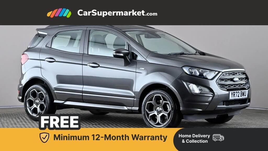 Cruise Control, Sat Nav, Android Auto, Apple CarPlay, Parking Sensors, Traffic Sign Recognition;Ford EcoSport 1.0 EcoBoost 125 ST-Line (Grey) A compact SUV with sporty styling and a range of useful driver assistance features. Includes cruise control, sat nav, Android Auto, Apple CarPlay, parking sensors, and traffic sign recognition. Optional extras include Metallic paint in Magnetic and partial Sensico Neosuede upholstery in Ebony with red stitching (£675). Minimum 12-month warranty. Last serviced 08/09/2025. MOT due 07/09/2026.