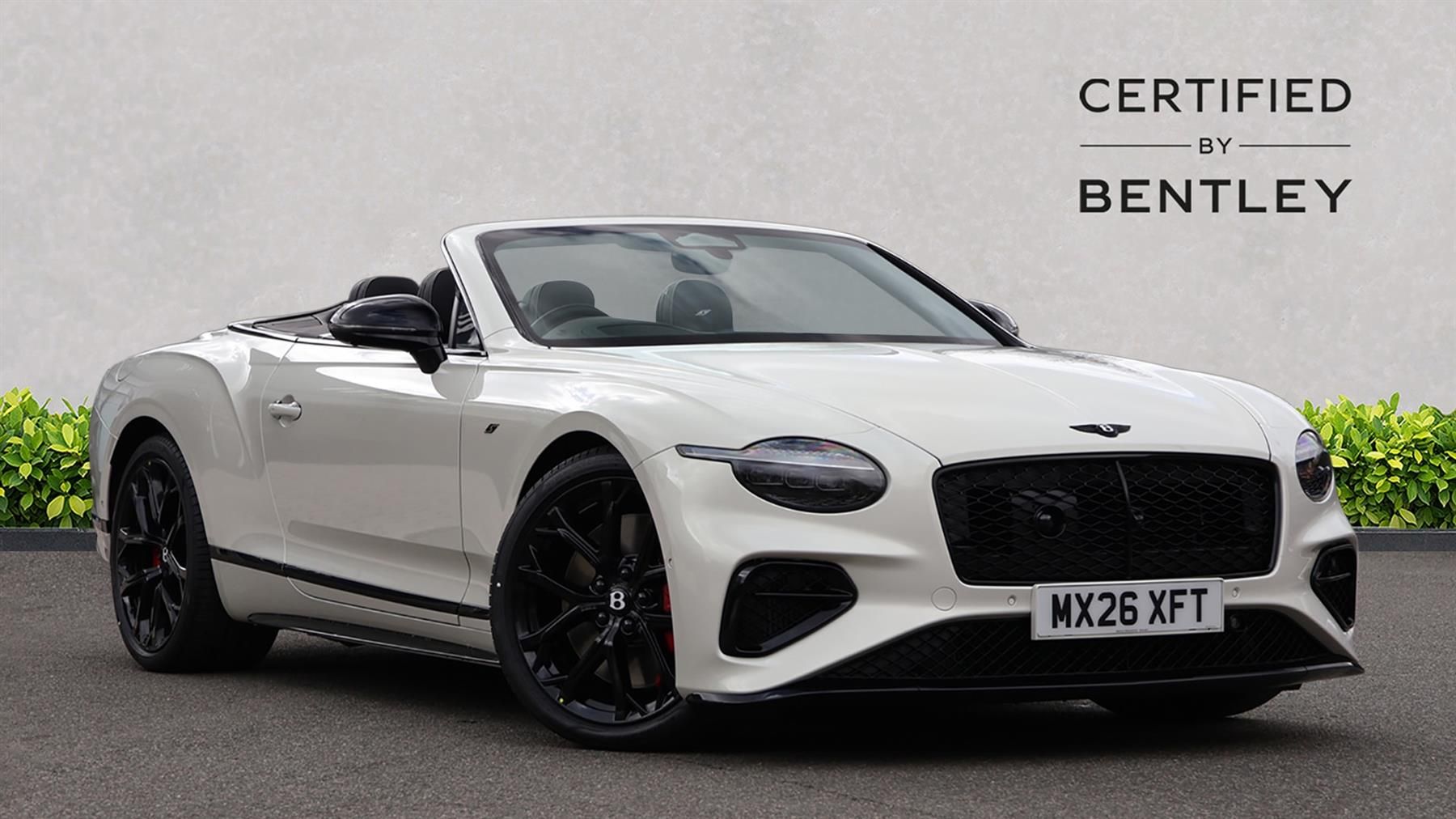 VAT Qualifying Vehicle,Touring Specification,Akrapovic Titanium Sports Exhaust,Bang & Olufsen for Bentley,Black Styling Kit,Front Seat Comfort Specification,Mood Lighting Specification,Dark Chrome Interior Specification,360 Degree Parking Camera,Head-Up Display,Night Vision,Adaptive Cruise Control,Piano Black Veneers,Leather Specification with Precision Diamond Quilting,Heated Indented Hide Trimmed Steering Wheel,First Aid Kit and Warning Triangle,Contrast Stitching,Contrast Seatbelts - by Mulliner,Intelligent Park Assist with Remote Operation,Deep Pile Overmats - Front,Contrast Binding to Carpet Overmats,Ghost White - Pearlescent Paint by Mulliner,Sports Pedals,Wind Deflector,Rear Wheel Steer,Animated Welcome Lamps - By Mulliner,Bentley Self Levelling Wheel Badge,New Car Service Plan: 5 Year,Red Painted Calipers,22" Ten Spoke Sports Wheel Painted Black