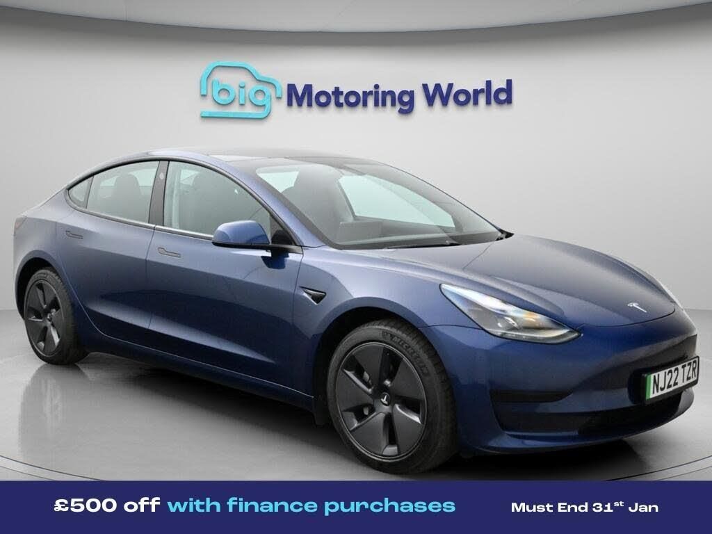 £500 towards your finance depo-Our Tesla Model 3 is finished in Blue. Specification includes a range of fantastic features including £500 towards your finance deposit, Panoramic Roof, Leather Seats, Adaptive Cruise Control, Satellite Navigation, Heated Seats, Wireless Phone Charging, Rear View Camera, Heated Steering Wheel, Bluetooth Specification information is supplied by CAPHPI and may vary to the actual car. This data does not form any part of a buying contact. Please check specification prior to purchase in-store. The MOT is valid until March 2027, visit bigmotoringworld.co.uk for more photos, a 360 tour, service history and a free HPI report.Were BIG on peace of mind and this Blue Tesla Model 3 has completed our comprehensive 200 point inspection and passed all checks. Its ready for you to drive away with immediate collection in-store. We include a 90-day warranty as standard plus an option to extend for up to 3 years.Reserve this car exclusively for you, safely and securely at bigmotoringworld.co.uk, with a fully refundable £99 deposit. Test drive before you buy, with no commitment, no hassle and a completely haggle free experience. Still searching and want to see thousands more cars? We are BIG on choice with over 8000 cars to choose from.Visit our award winning web site bigmotoringworld.co.uk.Were Big Motoring World and were BIG on what matters to you.