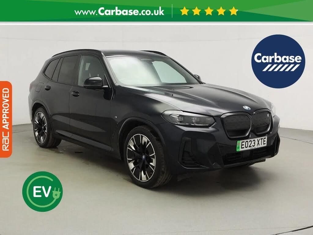 20in Alloy Wheels - M Aerodynamic - Bi-Colour,Acoustic Glazing,Air Breather with BMW M logo,BMW Individual Lights - Shadowline,Blue Ring Around BMW Logos,Electric Windows - Front,Exterior Mirrors - Electrically Folding with Anti Dazzle,Exterior Trim - Extended High Gloss Shadowline,Exterior Trim - High-Gloss Shadowline,Front Bumper - M Sport with iX3 Specific Design with Blue Contents,M Aerodynamic Exterior,M Badging on Front Side - Left and Right,Panoramic Glass Sunroof,Rear Diffuser in Blue,Roof Rails - Shadow Line High Gloss - Black,Sun Protection Glass,Tyre Repair Kit,Washer Jets - Heated,Welcome Lighting,ABS - Anti Lock Braking System,Active Guard Plus,Active Protection,Airbags - Driver and Front Passenger,Airbags - Front Side for Driver and Passenger,Airbags - Head - Front and Rear,Alarm System,BMW Iconic Sounds - Electric,Bumper System Front and Rear - Replaceable Deformation Elements for Impacts Up to 15kmh,CBC - Cornering Brake Control,Closing System with Central Locking,Comfort Access,Crash Sensor,DSC - Dynamic Stability Control Plus,DTC - Dynamic Traction Control,Driving Assistant Professional,Dynamic Brake Lights,Electro Mechanical Parking Brake,Electronic Vehicle Immobiliser,M Seat Belts,Reversing Light,Safety Battery - Terminal Clamp,Side Impact Protection,Warning Triangle,eDrive Exterior Sound,Adaptive LED Headlights,Follow Me Home Headlight Function,Headlights - Beam Throw Control,High-Beam Assistant,Third Brake Light Using LED Technology,Adaptive Suspension,Charging Cable - Mode 3 - 5m,Flexible Charger,Multiple-Control-Arm Rear Axle,Power Steering - Electric,Preparation for Adaptive M Suspension,Servotronic Steering,Air Conditioning - Automatic,Ambient Lighting,Armrests,Automatic Operation of Tailgate,Automatic Start-Stop Button,BMW Gesture Control,Backrest Width Adjustment for Driver,Centre Lock Switch,Cup Holders - Front x2,Door Sill Strips,Electric Memory Seats,Extended Storage,Floor Mats - Velour,Galvanic Embellisher for Controls,Glove Compartment - Lockable,Headlining - M Anthracite,Heated Seats for Driver and Front Passenger,Heated Steering Wheel,Instrument Panel in Sensatec,Interior Rear-View Mirror with Automatic Anti-Dazzle Function,Interior Trim - Aluminium Rhombicle with Pearl Chrome,Lashing Eyes in Luggage Compartment,Luggage Compartment Lights,Luggage Net,Lumbar Support - Drivers,M Sport Leather Steering Wheel,Non Smoker Package,Rain Sensor with Automatic Headlight Activation,Rear Centre Armrest including Two Cupholders,Seat Backrest Adjustment for Rear Seats,Seats - Front Sports,Split Folding Rear Seat,Steering Column Adjustment,Storage Options,Sun Visors with Vanity Mirrors and Ticket Holder,Attentiveness Assistant,BMW iDrive,Brake Pad Wear Indicator,Condition Based Service,Driving Experience Switch,Front and Rear Parking Sensors,Head-Up Display,Parking Assistant,Parking Assistant Plus,Reversing Assist Camera,Runflat Indicator,TPMS - Tyre Pressure Monitoring System,BMW Connected Package Professional,BMW ConnectedDrive Online Services,BMW Legal Emergency Call,BMW Live Cockpit Professional,BMW TeleServices,DAB Digital Radio,Drive Recorder,Enhanced Bluetooth with Wireless Charging,Loudspeaker System - Harman Kardon,Power Sockets,WiFi Hotspot,Widescreen Display,Carbon Black,Model Specific Design Elements,Vernasca Leather - Black with Blue Contrast Stitching