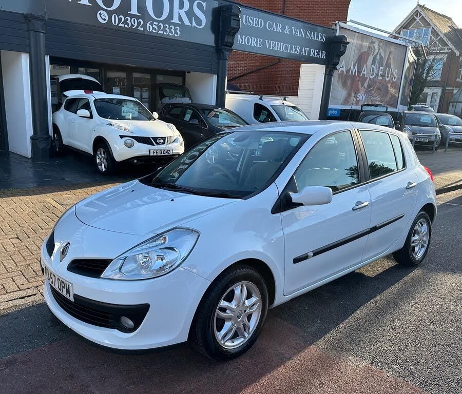 Introducing the 2007 Renault Clio 1.6 VVT Privilege 5dr, a white hatchback with an automatic transmission and petrol engine. With 65,000 miles and two previous owners, this ULEZ-compliant vehicle offers both style and practicality.