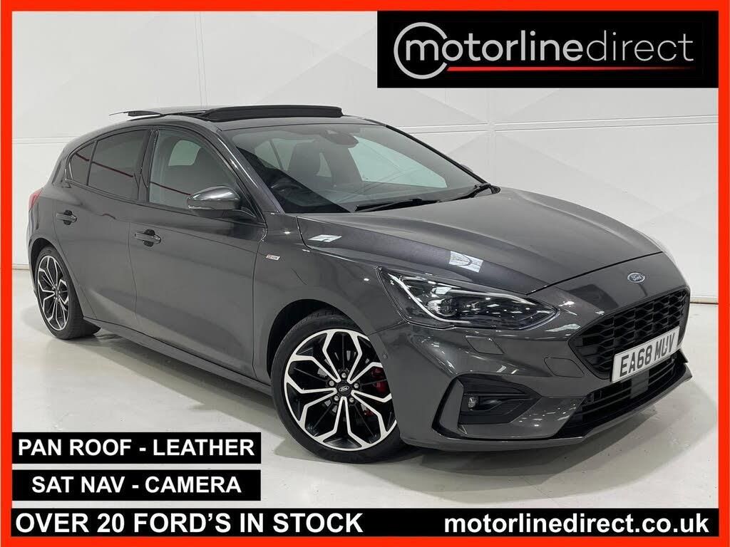 FINANCE & PART EXCHANGE AVAILABLE* - Only 46,262 miles from new, SERVICE HISTORY, 2 KEYS - this FANTASTIC FORD FOCUS 1.5 ST-LINE X 5 DOOR HATCHBACK WITH FULL GLASS PANORAMIC SUNROOF is finished in stunning sports Magnetic grey metallic & is complimented with contrasting sports 1/2 black sports leather trim and extends itself to the following additional features - Ford ST-Line X Sports styling, full electric tilt & sliding glass panoramic sunroof with electric blind, on board satellite navigation system, reverse camera, dual zone climate control / automatic air conditioning, trip computer, cruise control with speed limiter, heated leather trimmed multi function steering wheel, front & rear park distance control, driver & passenger heated front seats, drivers seat electrically adjustable, Bluetooth, DAB, media input, FordPass Connect, upgraded Bang & Olufsen sound system, voice command, keyless start, lane keeping aid with lane departure warning, post-collision braking, pre-collision assist with pedestrian detection, heated front screen, drive mode select, privacy glass, electric adjustable & folding exterior mirrors, blind spot monitor, traffic sign recognition, driver alert, cross traffic alert, hill start assist, auto headlights, rain sensor, power assisted steering, abs, airbags, electric mirrors, electric windows, remote central locking, Ford brake callipers finished in sports red, Ford 18'' sports alloy wheels, Ford anti theft system. ***FINANCE AVAILABLE - subject to status. T&C's apply.***PART EXCHANGE AVAILABLE***ALL VEHICLES ARE HPI & NATIONAL MILEAGE REGISTER CHECKED***THE AA WARRANTY IS SUBJECT TO TERMS & CONDITIONS AND DOES NOT COVER VEHICLES THAT ARE BEING USED FOR TAXI, PRIVATE HIRE, CHAUFFEURING PURPOSES OR FOR REWARD.***Please note, that the specifications/components/features etc. are generic to that vehicle of the type advertised but may not be included in the specific vehicle that is for sale. It is for the intended purchaser to satisfy themselves of the presence or absence of any specifications/components/features before sale.-PANORAMIC ROOF-NAV-LEATHER-SPECS INCLUDE AMG M SPORT S LINE QUATTRO 4X4 AWD NAV LEATHER SUNROOF PANORAMIC HEAD UP & ULEZ MODELS