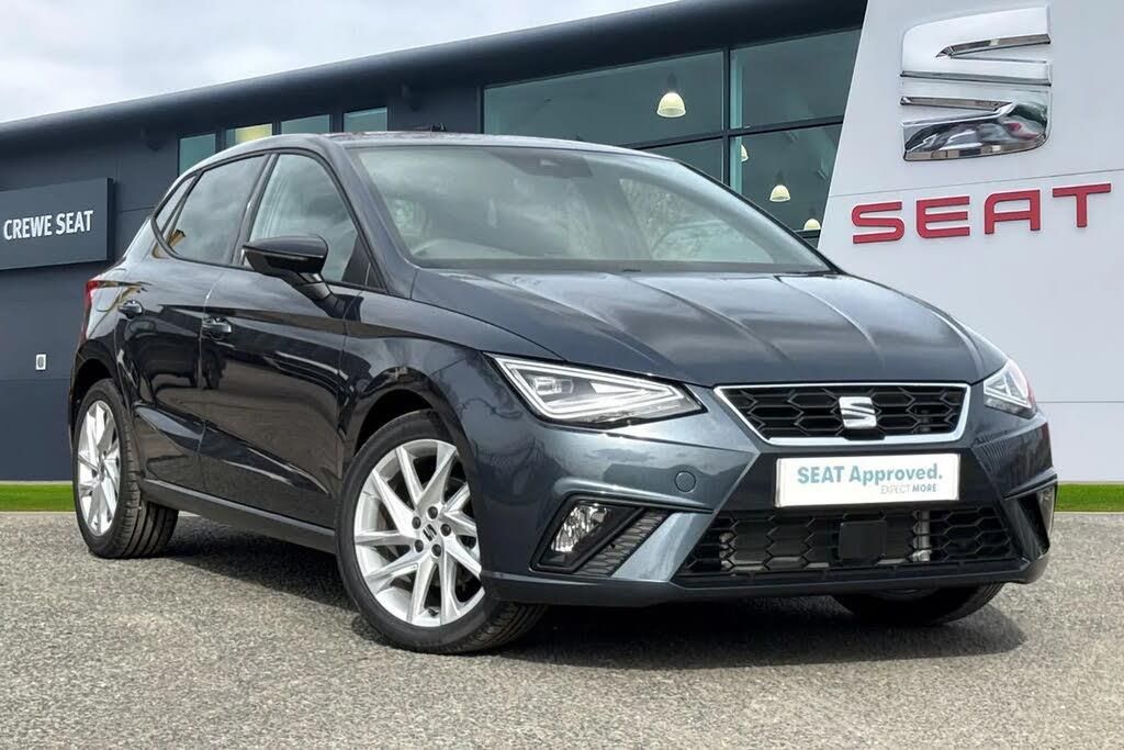 The SEAT Ibiza 1.0 TSI FR Euro 6 (s/s) 5dr in striking Magnetic Tech Grey combines sporty styling with everyday practicality, delivering a refined yet dynamic driving experience. Its confident stance is enhanced by 17 inch Brilliant Silver alloy wheels and distinctive FR exterior styling, while dark tinted rear windows and sleek LED taillights add a touch of sophistication. The full LED automatic headlights, complete with dynamic range control and coming and leaving home functionality, ensure excellent visibility and a modern road presence. Inside, the cabin is designed with both comfort and driver engagement in mind. The sporty feel is elevated by chrome interior detailing, black headlining, red accented air vents, and ambient lighting that creates a premium atmosphere. The flat bottomed, Nappa leather multifunction steering wheel and sports suspension further reinforce the Ibiza's athletic character, while the SEAT Drive Profile with ECO function allows you to tailor performance to your driving style. Technology is at the forefront, with a crisp 9.2 inch navigation system and an 8-inch digital cockpit providing clear, intuitive access to driving information and entertainment. Full Link smartphone integration and Bluetooth audio streaming with handsfree functionality keep you seamlessly connected on the move. Comfort is assured through dual-zone climate control, a combination filter, and electrically adjustable, folding, and heated door mirrors, while practical features such as rear parking sensors, cruise control with speed limiter, rain-sensing wipers, and an auto dimming rear view mirror make every journey easier and more enjoyable. This vehicle is compliant with the Ultra Low Emission Zone (ULEZ) standards!