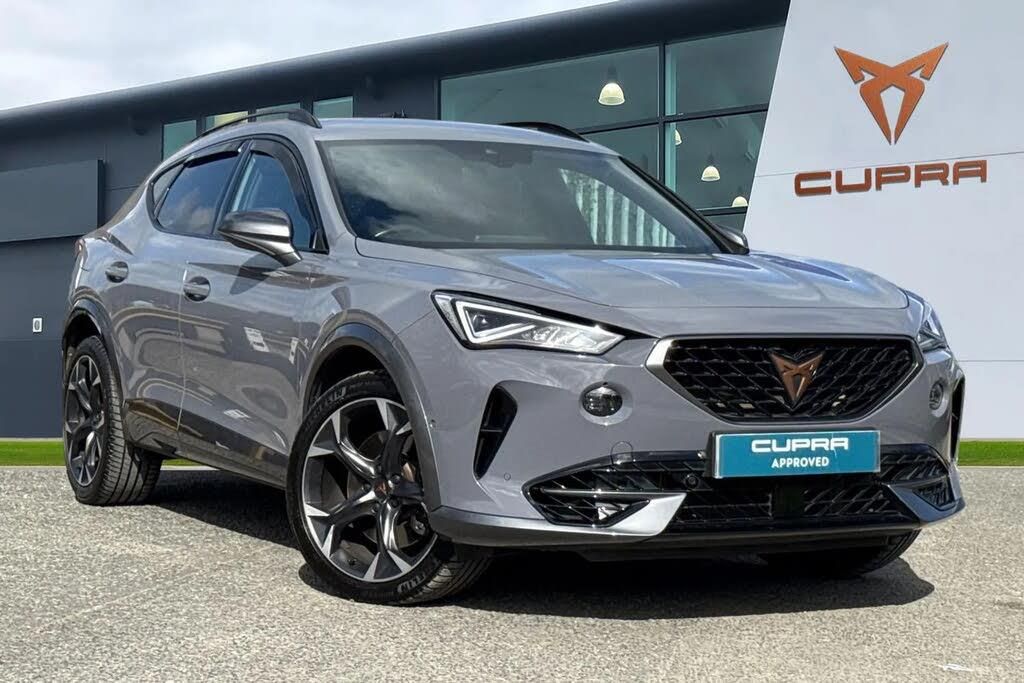 The CUPRA Formentor 2.0 TSI VZ2 DSG 4Drive Euro 6 (s/s) 5dr in striking Graphene Grey delivers a confident blend of performance, technology, and premium styling. Sitting on exclusive 19 inch machined sport alloy wheels finished in matt black and silver, its athletic stance is enhanced by gloss black roof rails, sharp LED headlights, and distinctive LED taillights with dynamic indicators. The rear is equally purposeful, featuring a VZ badge and a sporty diffuser complemented by twin exhaust pipes on each side, giving the car a bold and unmistakable presence on the road. Inside, the cabin reflects CUPRA's performance focused identity with copper and aluminium detailing, Cupra sport pedals, and a heated supersports multifunction leather steering wheel complete with satellite buttons and gearshift paddles for an engaging driving experience. The digital cockpit and fully configurable dashboard place essential information right at the driver's fingertips, while smart wraparound ambient lighting creates a refined and immersive atmosphere. Advanced technology is seamlessly integrated throughout, including a built in navigation system, wireless phone charging, and Kessy keyless entry and start for everyday convenience. Driver assistance features such as predictive adaptive cruise control with speed limiter, lane assist, driver alert system, and park assist with front and rear sensors ensure confidence and ease on every journey, supported by a rear view camera for added visibility. Performance and control are at the heart of this model, with driving profile selection allowing you to tailor the car's behaviour to your preference, alongside an electronic locking differential with dynamic traction support for enhanced grip and stability. This vehicle is compliant with the Ultra Low Emission Zone (ULEZ) standards!