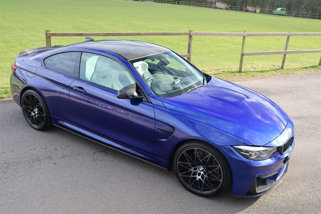 Stunning 2020 M4 Competition BMW Individual Coupe DCT Ultimate Pack finished in San Marino Blue with a Carbon Roof Structure and Carbon Styling Package, Merino Opal White Leather M Carbon Competition Hard Back Seats. 40.000 miles with FSH. Genuine BMW M4 CS Performance Exhaust Upgrade Carbon Exterior Styling Package Steering wheel heater 20" BMW light-a.w.styl.666M shadow M twin-clutch transmission with Drivelogic Locking wheel bolt Tyre pressure display Tyre repair set Adaptive M chassis Alarm system Comfort access system Reversing camera Sun protection glazing Floor mats velour Warning triangle and first aid kit Interior/outside mirror with auto dip Interior mirror with automatic-dip Seat adjustment, electric, with memory Backrest width adjustment for driver and front passenger Storage compartment package Seat heating driver/passenger Armrest front, retractable M seat belts Carbon fibre accent black chrome Park Distance Control (PDC) Rain sensor Automatic air conditioning Cruise control with braking function Adaptive LED headlight Light package Additional 12V sockets High-beam assistant Driving Assistant Passenger airbag deactivation Surround View Navigation system Professional Head-up display DAB tuner Harman/Kardon surround sound system Area-Code 2 for DVD Intelligent emergency call Teleservices Connected Drive Services Real-Time Traffic Information Remote Services Online entertainment Telephony with wireless charging WLAN Hotspot High gloss shadow line Headlining anthracite M Shadow Line with expanded scope Competition package M Competition package Coding, alarm signal Automatic locking during starting Thief proofing device Road sign detection Leather equipment This car also has a Bootmod 3 stage 1 Power Upgrade with Transmission Tune. A fantastic looking cherished example that has been displayed at Goodwood on various occasions. ULEZ COMPLIANT - NO CHARGE James Paul Car Sales is a family run business in a small village of Bucks Green conveniently situated on the Surrey and Sussex border. Established for over 35 years every car we offer is carefully hand selected and will come with a comprehensive provenance check. All of our vehicles are subject to a thorough pre delivery inspection through our workshops including a fresh MOT and service where required. Please ask us about our extremely competitive finance packages or Visit our website www.jamespaul.co.uk to create your own Finance Quote and Apply to help you fund your new car. Part exchanges welcome either way if you are looking to trade up or down. Please note that we do not accept reservations on cars via third party sites, if you wish to put a deposit on a car, please call 01403 823723 and speak to a member of the James Paul Car Sales team. 12V Power Socket in Front Centre Console and Passenger Footwell,20in Alloy Wheels - M Light Star-Spoke Style 666M - Forged,8 Programmable Favourite Buttons,AUX-In Connection,Access to BMW Connected Plus (12 Month Subscription From New),Active M Differential,Adaptive M Suspension,Air Breather,Air Conditioning - Automatic - Dual Zone,Airbags,Alarm System - Thatcham 1 with Remote Control and Engine Immobiliser,Armrest - Front with Sliding Adjustment,Automatically Dimming Rear View Mirror,BMW ConnectedDrive Online Services,BMW Emergency Call,BMW Individual High-Gloss Shadowline with Extended Contents,BMW Professional Radio with Single CD Player - with MP3 Playback Compatibility,BMW TeleServices,Battery Safety Cut Off,Bottle Holders Integrated into Door Trim Storage Compartments - Front - Up to 1 litre,Brake Pad Wear Indicator - Front and Rear,Bumper System Front and Rear - Replaceable Deformation Elements for Impacts Up to 9mph,Carbon-Fibre Reinforced Plastic - CFRP - Roof,Central Locking Switch - Doors - Fuel Filler Cap - Luggage Compartment,Check Control Warning System for Monitoring of Lights and Door-Luggage Compartment Open Warning,Child Proof Locking System - Rear Doors,Child Seat ISOFIX Attachment - Rear with Passenger Airbag Deactivation,Competition Package,Condition Based Service,Control Display - 8.8in Colour Display Screen,Crash Sensor,Cruise Control with Brake Function,Cup Holders - Front - Two with Removable Oddments Tray-Lid,DAB Digital Radio,DSC - Dynamic Stability Control Plus,Direction Indicator - Side Repeaters - Integrated in Exterior Mirrors,Direction Indicator Lenses - LED,Door Sill Finishers - M Designation,Dynamic Brake Lights,EPS - Electric Power Steering,Electric Windows - Front and Rear with Open-Close Fingertip Control - Anti-Trap Facility and Comfort Closing Function,Enhanced Bluetooth Telephone Preparation with Wireless Charging,Extended Lighting,Exterior Mirrors - Electrically Folding with Anti Dazzle,Exterior Parts in Body Colour,Exterior Trim - High-Gloss Shadowline,First Aid Kit and Warning Triangle,Floor Mats - Velour,Full Black Panel Display,Gearshift Lever with M Badge,Glove Box,Grab Handles - Integrated in Roof Lining x4,Handbrake Lever and Gear Lever in Leather,Headlining - Anthracite,Heat Protection Glazing with Green Tint,High Level Third Brake Light,Interior Lighting - Front Centre Over Interior Mirror with Soft-Light and Rear Centre,Interior Trim Finisher - Blue Shadow with Black High Gloss Finisher,Kidney Grille - Chrome with Double Black Vertical Slats and M4 Badging,LED Headlights,LED Taillights with New 3D L-Shaped LED Light Design,Lights-On Warning by Audio Warning Signal When Ignition is Switched Off,Lightweight M Sports Seats - with Breakthrough Elements in the Seat Back,Loudspeaker System - BMW Advanced,Luggage Compartment - Lashing Eyes,Luggage Compartment - Light,M Aerodynamics Package,M Designation,M Double Clutch Transmission with Drivelogic,M Drive Manager,M Instrument Cluster,M Rear Spoiler - Integrated into Bootlid,M Seat Belts,M Servotronic,M Sports Exhaust Finished with Black Chrome Tailpipe Finishers,M-Specific Rear Seat with Two Integrated Headrests and One Removable Centre Headrest,M-Specific Seats for Driver and Passenger,Media Packa