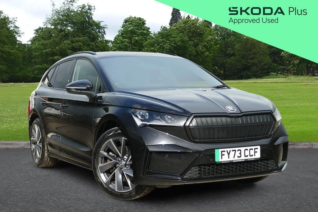 Simpsons Skoda Colne are delighted to offer this stunning, stealth spec 2023(73) Skoda Enyaq Sportline Plus 82kWh 286PS 4x4 finished in Black Magic Pearlescent paint with the 20" Vega alloy wheels. Great specification and perfect for the family. A perfect blend of style, performance and practicality, this all-electric SUV is ideal for family life and everyday adventures. The dual-motor four-wheel drive system delivers confident performance in all conditions, while the 82kWh battery offers a superb range of up to 328 miles when new. Charging is simple and flexible, with rapid charging from 080% achievable in as little as 28 minutes. Inside, youll find a high-spec, comfortable cabin featuring heated sport seats, heated steering wheel and tri-zone climate control, along with a large 13" touchscreen navigation system with wireless Android Auto and Apple CarPlay. Further highlights include a rear-view camera with front and rear parking sensors, Matrix LED headlights, electric tailgate, adaptive cruise control, blind spot detection and an electrically adjustable drivers seat with memory. ULEZ compliant. Part exchanges welcome. As a family-owned business with over 80 years of experience, the Simpson family has looked after the motoring needs of Lancashire since 1944. We are driven by customer satisfaction and all our cars are carefully prepared to our own and Skoda's exacting approved standards, both mechanically and cosmetically, additionally with a minimum of 12 months warranty, 12 months breakdown roadside assistance and minimum 6 months MOT. For more information, to book your test drive or to request a personalised walk-around video of a vehicle, please contact our team at Simpsons Skoda Colne.