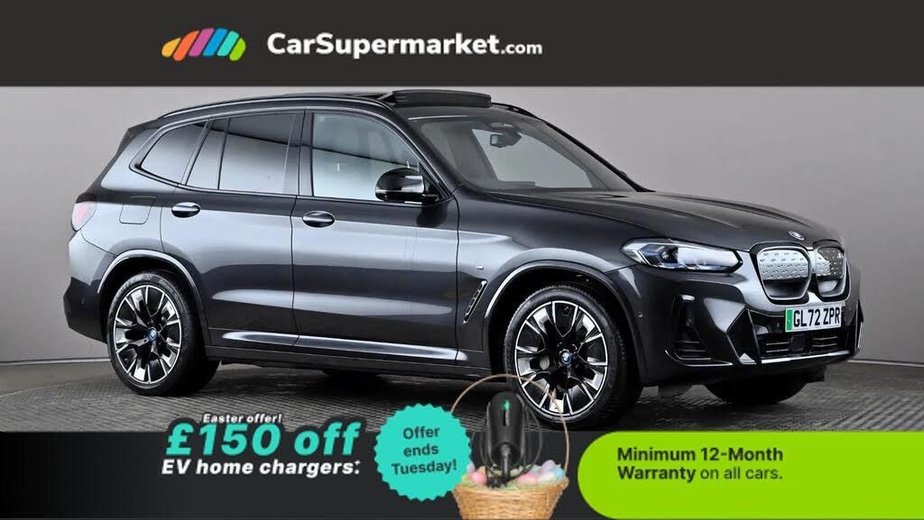 Lane Departure Warning, Android Auto, Apple CarPlay, Sat Nav, BMW Live Cockpit, Cruise Control, Bluetooth, Wireless Phone Charging, Electric Adjustable Seats and Mirrors, Heated Steering Wheel;BMW iX3 210kW M Sport Pro 80kWh Auto (Grey) A premium all-electric SUV delivering strong performance with luxury comfort and technology. Includes lane departure warning, Apple CarPlay, Android Auto, sat nav, BMW Live Cockpit and heated steering wheel. Optional extras include Laserlights, Sophisto Grey paint, and Vernasca Leather interior (£1,500). Minimum 12-month warranty. Last serviced 26/03/2026. MOT due 12/01/2027.