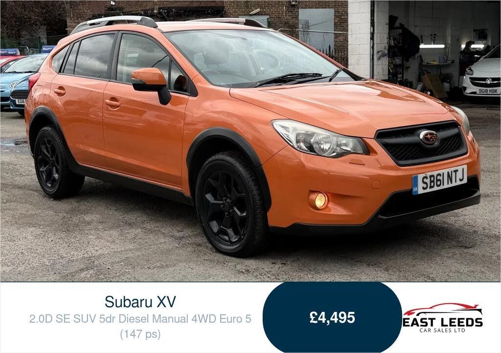 Full Service History + Just Been Serviced & New Clutch Fit. MOT Until 29/03/2027. 6 Months Warranty, Comes Fit with Detachable Tow Bar, 17" Alloy Wheels, Sony Touch Screen Media System with Bluetooth Hands Free, Car Play, Reversing Camera, Duel Electronic Climate Control, Cruise Control, 4 x Electric Windows, Folding Wing Mirrors. This Car Has Been Very Well Looked After. Discover the thrill of driving the Subaru XV 2.0D SE SUV 5dr Diesel Manual 4WD in stunning Tangerine Orange, available now at East Leeds Car Sales! This eye-catching vehicle isnt just about looks; it boasts a full service history and has just been serviced, so its ready for your next adventure. With a new clutch fitted, you can count on a smooth ride! Enjoy peace of mind with an MOT until 29/03/2027 and a 6-month warranty! This SUV is packed with features: a detachable tow bar for all your hauling needs, 17" alloy wheels for that stylish edge, and a Sony touchscreen media system with Bluetooth hands-free and CarPlay for seamless connectivity. Experience ultimate comfort with dual electronic climate control, cruise control for those long drives, and 4 electric windows plus folding wing mirrors for convenience. This Subaru XV has been exceptionally cared for, making it a fantastic choice for anyone seeking a reliable, fun, and practical vehicle. Dont miss out on driving away in this fantastic SUV in Leeds! Visit East Leeds Car Sales today and elevate your driving experience!