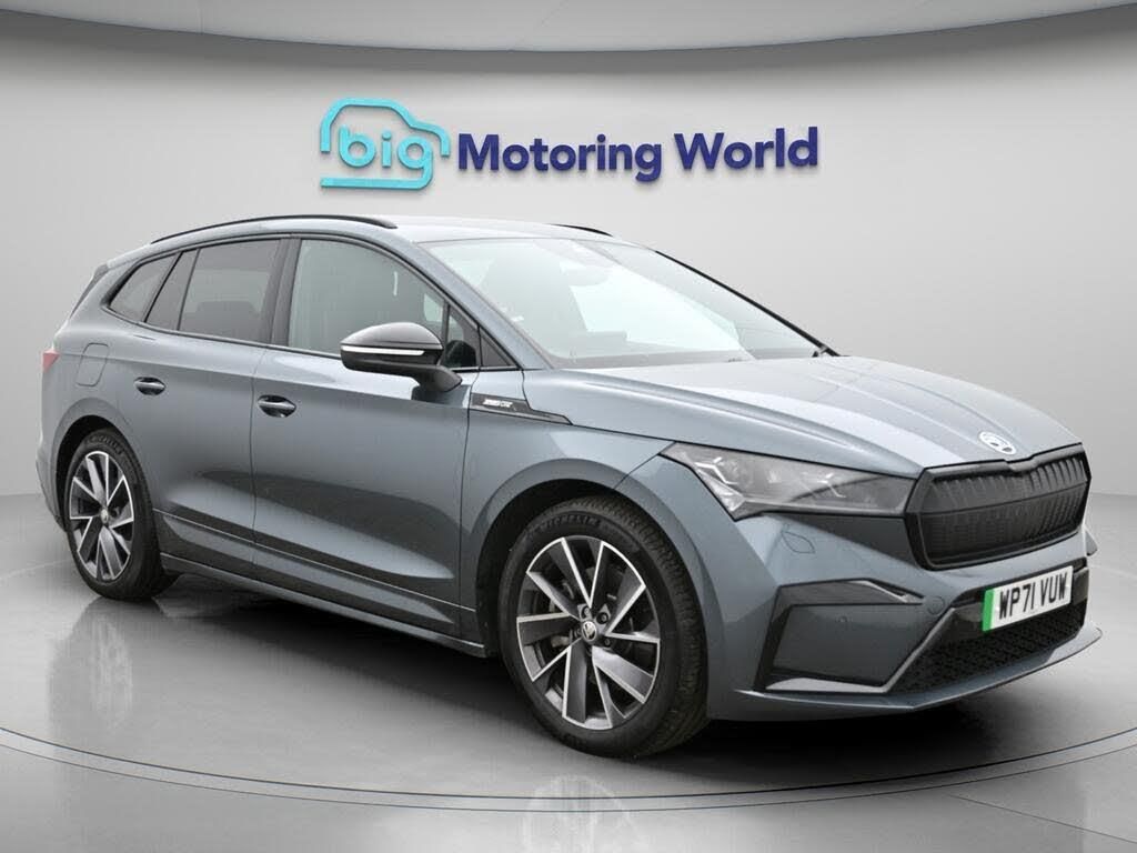 All Wheel Drive,Part Leather S-Our Skoda Enyaq comes with optional extras worth £1,990. Specification includes a range of fantastic features including All Wheel Drive, Part Leather Seats, Lane Assist, Cooled Glovebox, Parking Pack, Satellite Navigation, Privacy Glass, Heated Seats, Gesture Control, Rear View Camera Specification information is supplied by CAPHPI and may vary to the actual car. This data does not form any part of a buying contact. Please check specification prior to purchase in-store. The MOT is valid until January 2027, visit bigmotoringworld.co.uk for more photos, a 360 tour, service history and a free HPI report.Were BIG on peace of mind and this Grey Skoda Enyaq has completed our comprehensive 200 point inspection and passed all checks. Its ready for you to drive away with immediate collection in-store. We include a 90-day warranty as standard plus an option to extend for up to 3 years.Reserve this car exclusively for you, safely and securely at bigmotoringworld.co.uk, with a fully refundable £99 deposit. Test drive before you buy, with no commitment, no hassle and a completely haggle free experience. Still searching and want to see thousands more cars? We are BIG on choice with over 8000 cars to choose from.Visit our award winning web site bigmotoringworld.co.uk.Were Big Motoring World and were BIG on what matters to you.