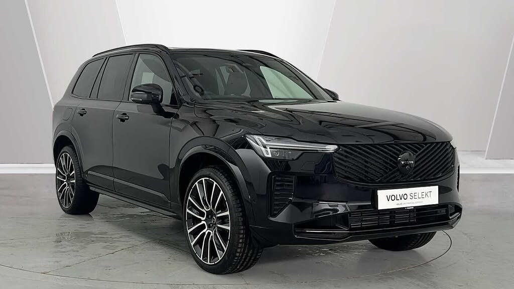 Front seat massage, 22 7-double spoke glossy black diamond cut, 8-speed Geartronic automatic, Pedals, Crystal gear shift by Orrefors®, Third row air conditioning, Four-zone climate system, Afterrun parking climate, Passenger airbag cut-off switch, Dual-stage airbags, Knee airbag. driver side, Panoramic roof, Charcoal headlining, Road Sign Information, Lane Keeping Aid and Lane Departure Warning, Black Edition front grille with high-gloss black insert, Heated grill emblem, Matrix-design LED headlights, Headlight cleaning, Trailer lamp control, 12.3-inch driver display, Google Assistant. Google Maps and Google Play Store, Adaptive cruise control, Head-up display, Intelligent Speed Assist (ISA), Volvo Cars App remote functions, Air-ventilated subwoofer, Digital Audio Broadcasting (DAB+), Bowers & Wilkins High Fidelity audio system, Power retractable door mirrors, Power passenger seat with memory, Wireless phone charging, Central locking controls. front and rear doors, Remote key, Door mirror covers. high-gloss black, Double locking, Tinted rear windows, BLIS and Cross Traffic Alert, Alarm, Power child safety lock, Keyless entry with hands-free power tailgate, Air purifier and remote cabin pre-cleaning, Digital owners manual, Textile mats. third-row, Checkered aluminium decor, Tailored dashboard and door top panels, Ventilated nappa leather upholstery, Front seat massage, Power driver seat with memory, Power passenger seat, Front seat ventilation, Heated front seats, Heated rear seats, Power folding outer rear head restraints. second row, 7 seats, Mechanical release second seat row, Power side bolsters, Power 4-way lumbar support, Textile interior cabin floor mats, Protection net, Grocery bag holder, Rear centre armrest, Integrated booster cushion, Illuminated vanity mirrors, Interior illumination. high level, Power outlet. load compartment, Distraction alert, First-aid kit, Load cover, Rear door sun curtains, Auto-dimmed rear view mirrors, Hidden storage, Power cushion extension. driver, Hill Start Assist, Tyre pressure monitoring, Active air suspension, Oncoming Lane Mitigation, Rear Collision Warning, Hill Descent Control, Slippery road alert, Emergency brake light, Heated steering wheel, Tailored sport steering wheel. Charcoal, Adaptive power steering, 22 7-double spoke glossy black diamond cut, Temporary mobility kit, Lockable wheel bolts, Wiper blades with integrated washers, Body-coloured door handles with ground lighting, Tailgate scuff plate. stainless steel, Illuminated sill moulding, High-gloss black side window trim, Roof rails. glossy black, Warning triangle, Laminated side and rear windows, Park assist. front. rear and sides, Whiplash injury protection, Inflatable Curtain, Side impact protection, Intelligent Driver Information System (IDIS), High positioned rear brake lights, ISOFIX mounting points. rear seat, Safety belts, Rain sensor, Steering wheel remote control, Humidity sensor, Start/Stop technology, Bluetooth® connection, Android Auto, Pilot Assist, Electric cabin heater and cooler, 360° camera, Alcohol lock software (not available in the UK), Protective cap kit. Matt Tech Grey, Apple CarPlay, Comfort front seats, 11.2-inch centre display, Charging station cable. 6m (16A)