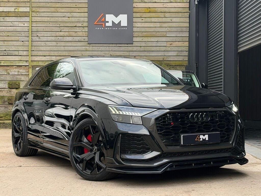 Mythos Black, Perforated Valcona Leather - Super Sport Seats - Black with Black Stitching, Steering Wheel - 3-Spoke Leather-Multi-Function-Heated-Sports-Shift Paddles, Headlining - Black Alcantara, Comfort and Sound Package, Red Paint Brake Calipers with RS Logo, Black Roof Rails, 23in Alloy Wheels - 5-Y-Spoke Rotor Design - Gloss Black, 4-Way Lumbar Support for Front Seats, 4-Zone Automatic Air Conditioning, AMI - Audi Music Interface, Advanced Key, Air Quality Pack, All-Wheel Steering, Anti-Theft Alarm with Tow-Away Protection, Anti-Theft Wheel Bolts and Wheel Loosening Warning, Audi Beam, Audi Connect Safety and Service - e-call, Audi Connect with Amazon Alexa Integration, Audi HD Matrix LED Headlights in RS Specific Design with Dynamic Front and Rear Indicators, Audi Music Interface in the Rear, Audi Pre-Sense Front, Audi Smartphone Interface, Audi Sound System, Audi Virtual Cockpit - 12.3in High Resolution LCD Display, Auto Dimming and Frameless Rear View Mirror, Black Cloth Headlining, Bluetooth Interface, Carbon Door Mirrors, Carbon Styling Package, Comfort Front Centre Armrest, Cruise Control with Speed Limiter, DAB Digital Radio, Door Mirrors - Electrically Adjustable - Heated - Folding - Automatically Dimming with Memory Function and Integrated LED Indicators with Kerb View Function for Passenger Side, Double Sun Visor, Driver - Front Passenger - Front Side and Curtain Airbag System, Driver and Front Passenger Memory Function for the Electrically Adjustable Front Seats, ESC - Electronic Stabilisation Control inc ABS - ASR and EDL, Electric Sunblinds for the Rear Side Windows and Manual Sunblind for the Rear Window, Electric Windows - Front, Electromechanical Active Roll Stabilisation, Electromechanical Parking Brake, Electromechanical Power Steering, Extended LED Interior Lighting Package - Multi-Coloured, Exterior Audi Rings and RS Q8 Logos with Gloss Black Finish, First Aid Kit and Warning Triangle, Front Seat Ventilation, Headlight Washers, Heated Front Seats, Hill Descent Control, Hill Hold Assist, ISOFIX Child Seat Mounting for Front Passenger, Illuminated Door Sill Trims with RS Logo, Inlays - Carbon Twill, Keyless Go with Remote Central Locking, Lane Departure Warning, Light and Rain Sensors, Luggage Compartment Sill Protection in Stainless Steel, MMI Navigation Plus including MMI Touch, Natural Voice Recognition, Operating Buttons in Black - Glass Look, Parking System Plus - Front and Rear Sensors, Parking System Plus with 360 Degree Display - Front - Rear and Side Sensors, Pedals in Stainless Steel, Power Operated Tailgate, Privacy Glass - Dark-Tinted Rear and Rear-Side Windows - From B-Pillar Backwards, RS 3-Spoke Heated Leather Multi-function Sport Steering Wheel with RS Mode Button, RS Adaptive Air Suspension, RS Audi Drive Select, RS Badges on the Front Wings, RS Coming-Leaving Home Animations in Front and Rear, RS Front Super Sport Seats with RS embossed Logo in Valcona leather, RS Manhattan Grey Front Spoiler Lip and Rear Diffuser Insert, RS Specific Bumpers in Full Body Colour, RS Sport Exhaust System, RS Steel Brakes with Black Calipers with RS Logo, RS Styling Package - Grey, Rear Bench Seat Plus, Rear-View Camera, Seat Belt Monitoring, Signature LED Daytime-Running Lights, Standard Pedestrian Protection Measures, Steering Column - Electrically Adjustable with Memory, Tool Kit, Tyre Pressure Loss Indicator, Tyre Repair Kit, Upper and Lower Interior Elements in Leather, Windshield with Heat Insulated Glass, quattro All-Wheel Drive with Sport Differential