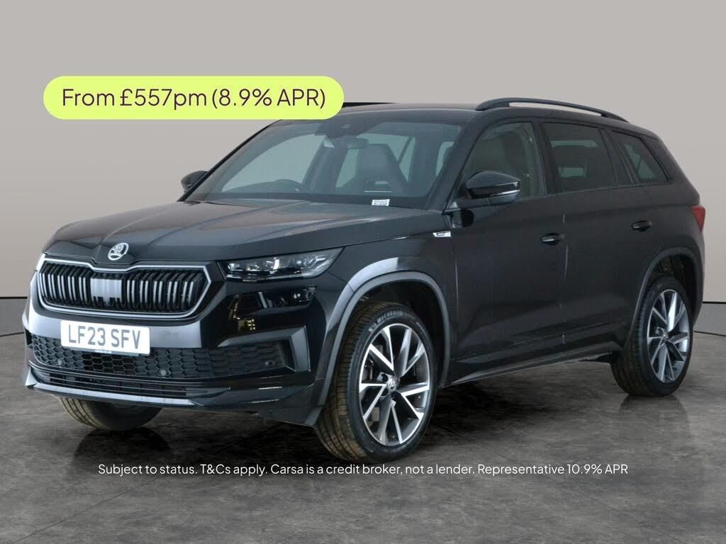 Step into comfort and style with the Skoda Kodiaq SportLine. This striking black SUV comes packed with impressive features, including a panoramic Skoda Columbus touchscreen navigation, seamless Apple CarPlay via SmartLink, and convenient keyless entry. Enjoy night drives with bright LED headlights and find perfect comfort with heated, electrically adjustable front seats with memory function for the driver. With seven seats and a reversing camera, the Kodiaq is ready for any family adventure. Bluetooth audio streaming and cruise control complete the modern driving experience. 3 services recorded, last serviced on 01/04/2026 at 17,828 miles. MOT to 28/03/2027. Visit our website for service history, online valuation, full vehicle specification plus multiple images. This vehicle is VAT qualifying. Any feature/option specified here is from 3rd party data. We cannot guarantee the accuracy of any specification supplied by a 3rd party. We recommend that you physically check the specification of the vehicle on site prior to purchase. This information does not form part of the buying contract. Terms & Conditions apply. We have over 2,000 cars available from our 10 national branches, check our website to see all our stock. Our Trustpilot rating is 4.4/5 with over 9,000 reviews.